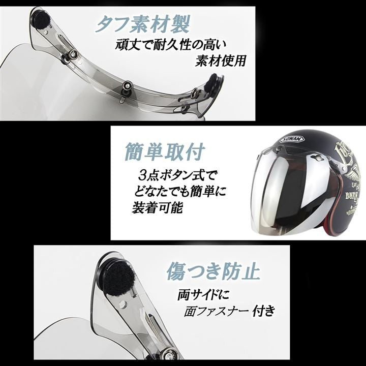 バブル シールド ジェットヘルメット フェイスガード UV ライト カット バイク オートバイ ゴーグル サングラス