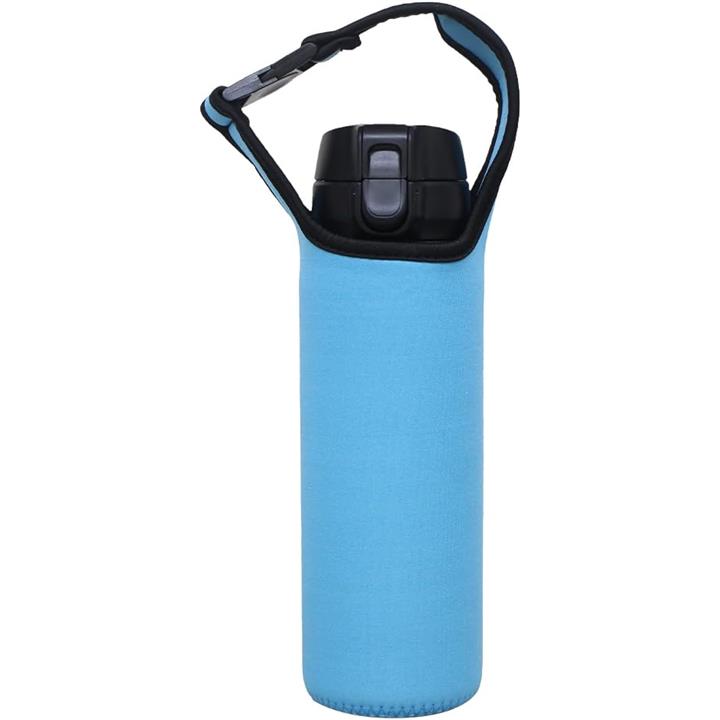 「伸縮素材でボトルにぴったりフィット」 ネオプレン素材を採用し、500~600mlのペットボトルや水筒にしっかりフィット。