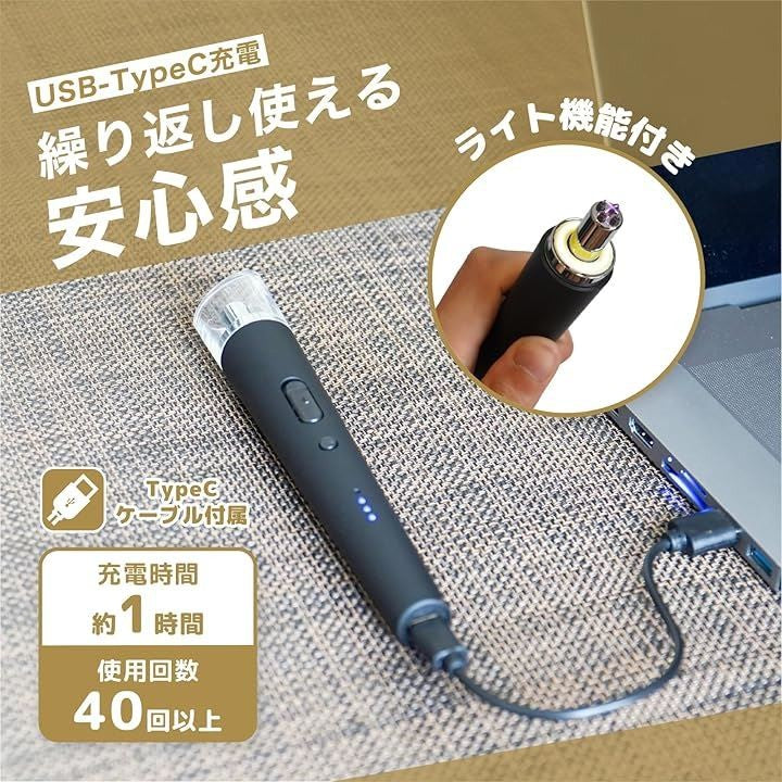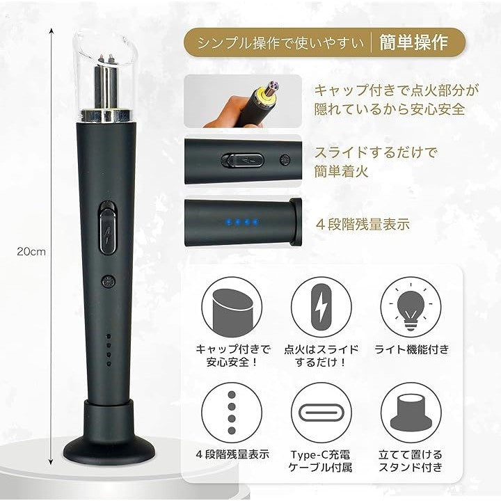 電子ライター 火を使わない安心 ダブルアーク 充電式 USB-TypeC キャンドル 線香 ローソク キャップ付き