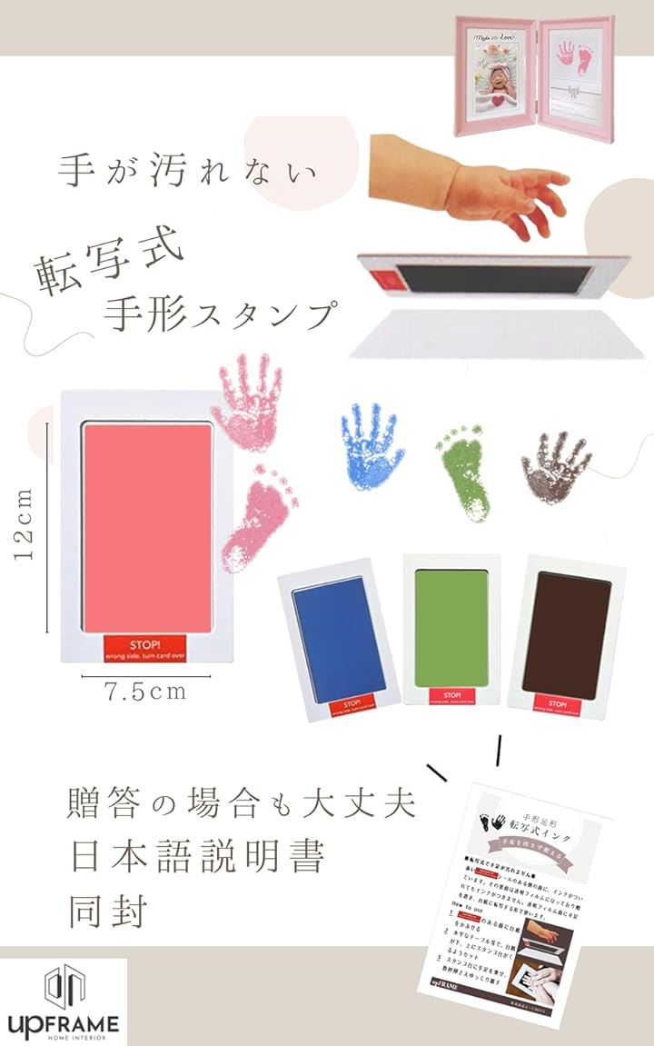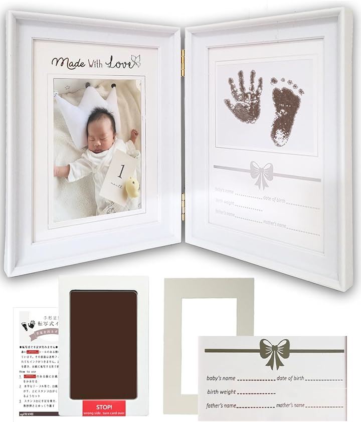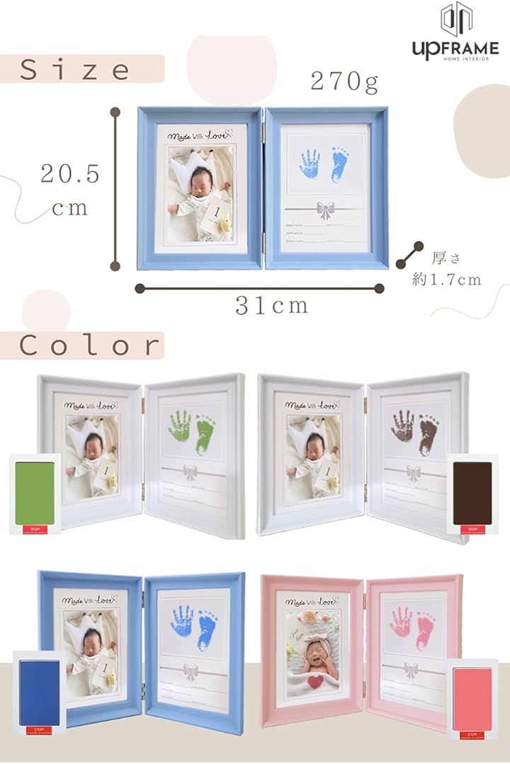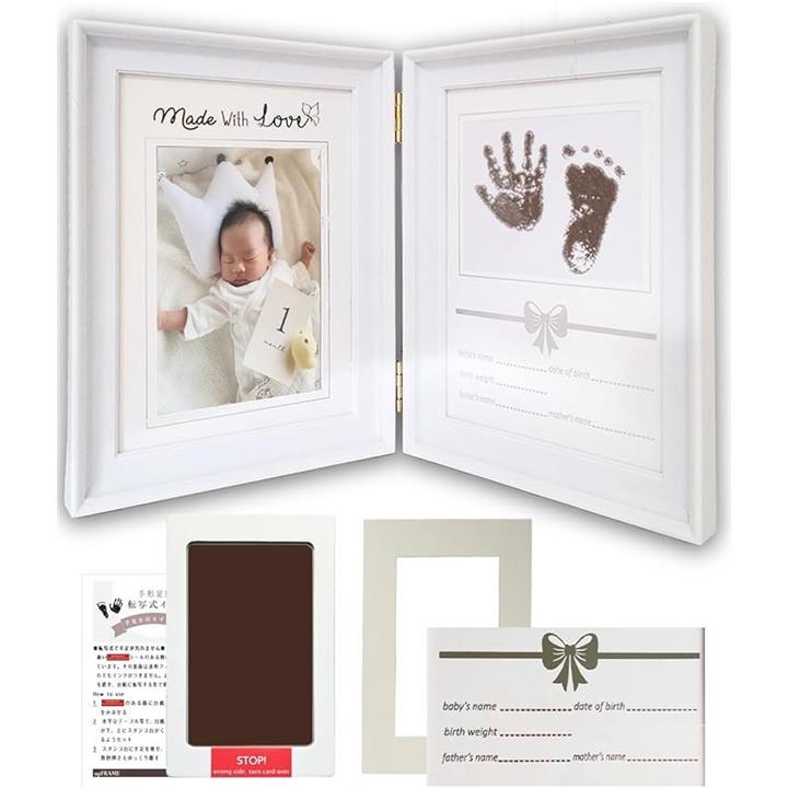 フォトフレーム 手形スタンプ 赤ちゃん 割れにくい樹脂フレーム 写真立て 汚れない 手形足形 置き掛け兼用 ベビーフレーム 出産祝い 命名書 ベビー用品 ジャストボーン