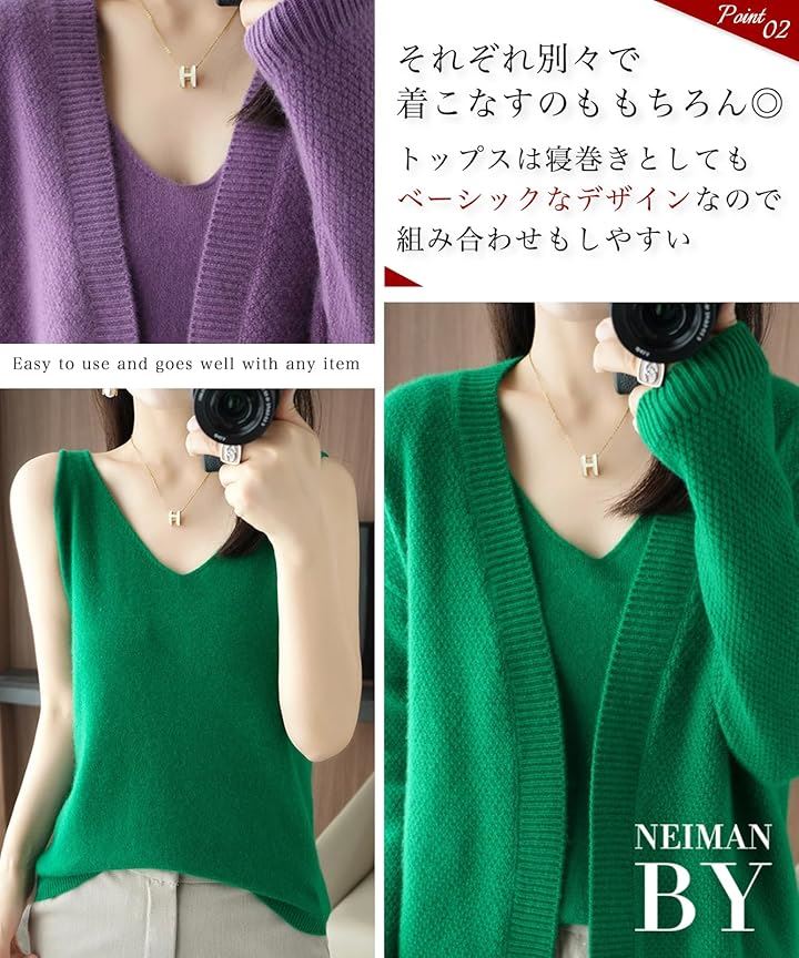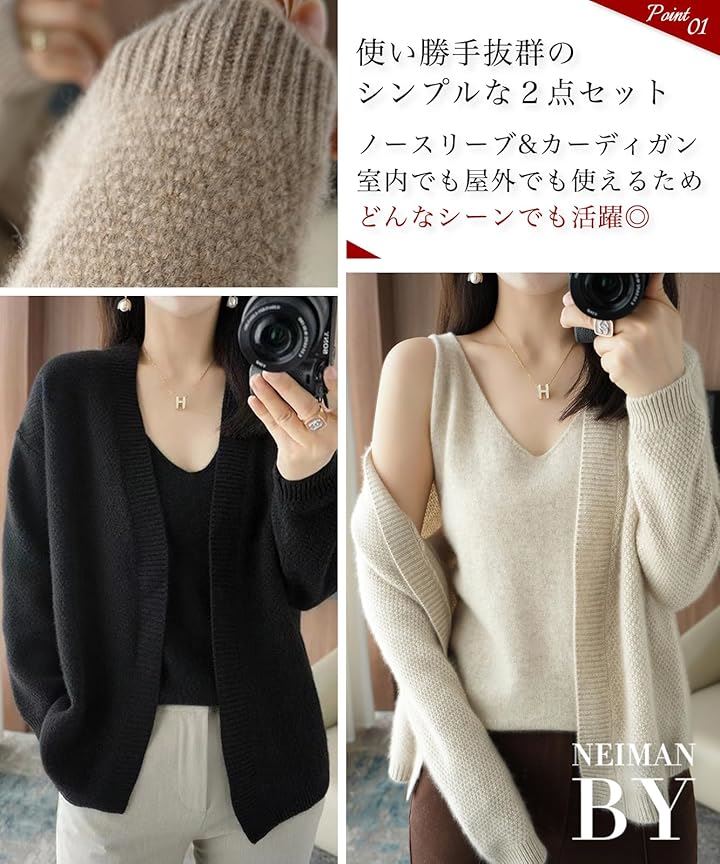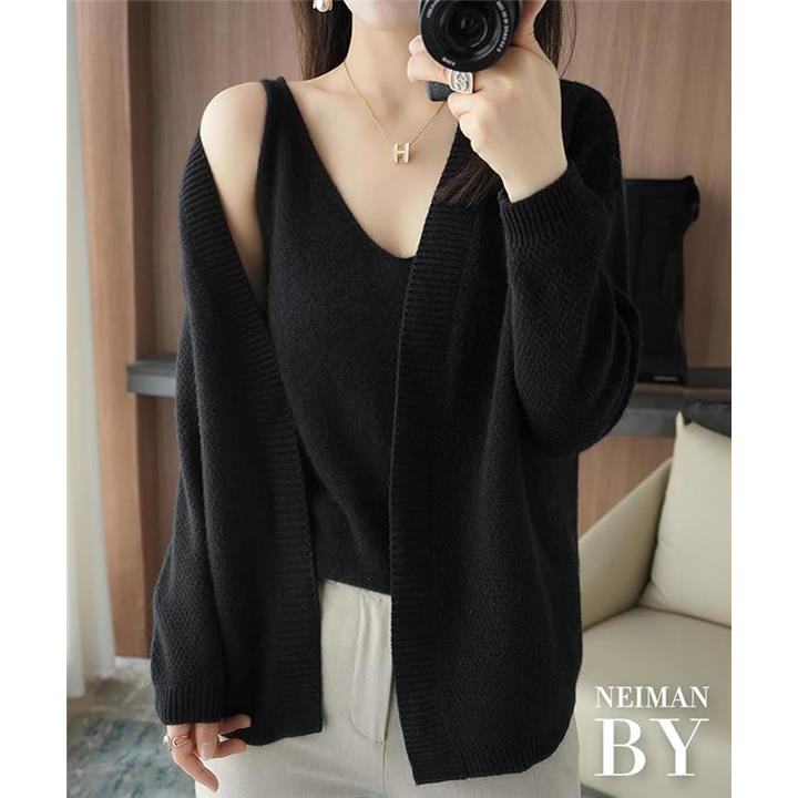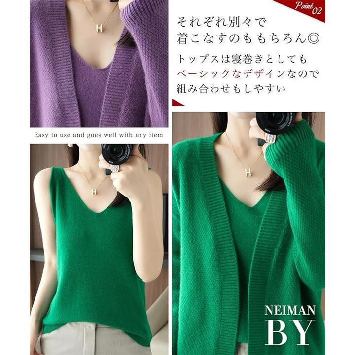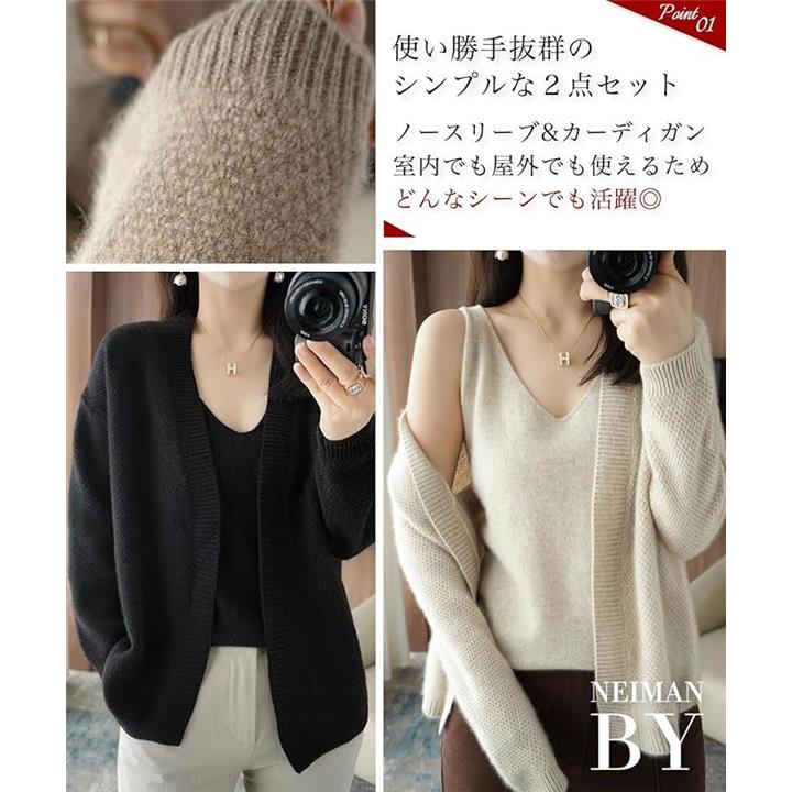 [ニーマンバイ] アンサンブル レディース ニット カーディガン ノースリーブ トップス 2点セット 秋 冬 ゆるカーディガン クールカーディガン スタイリッシュ マタニティー マタニティ 仕事用 仕事着 おうちコーデ 前あき 4A-N03 |