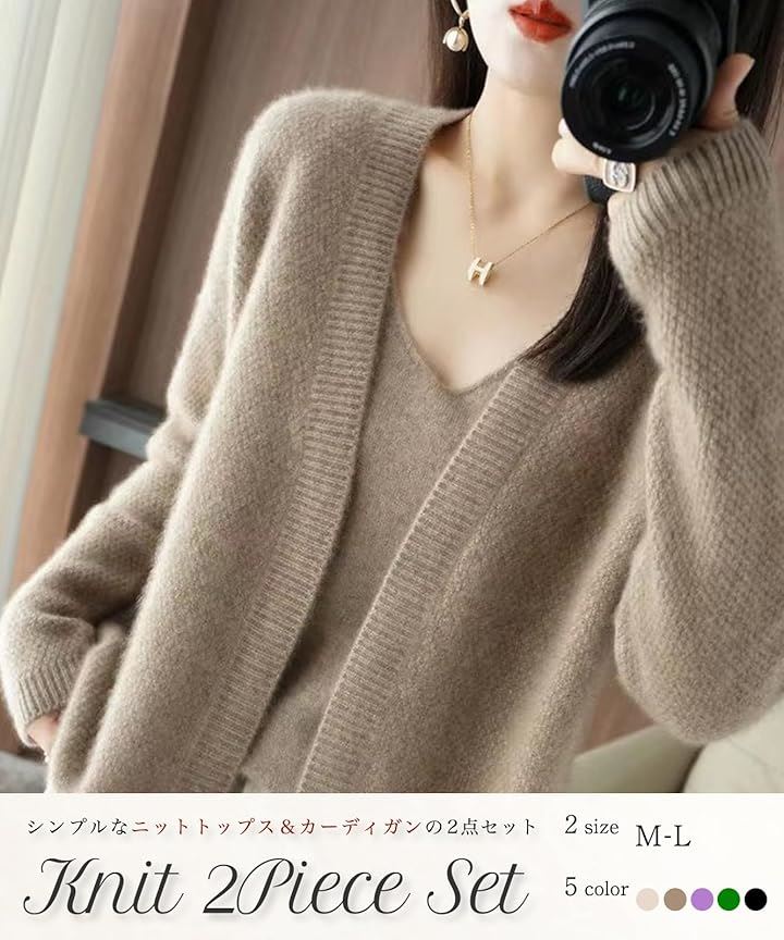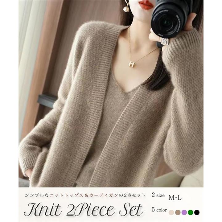 肌触り優しいニットトップス&ニットカーディガンの2点セットが登場しました。