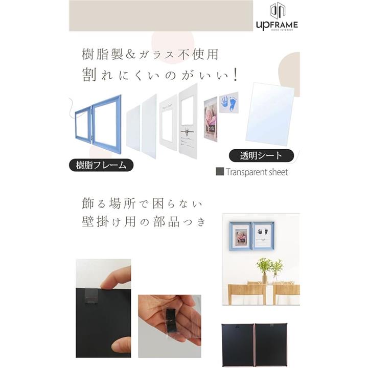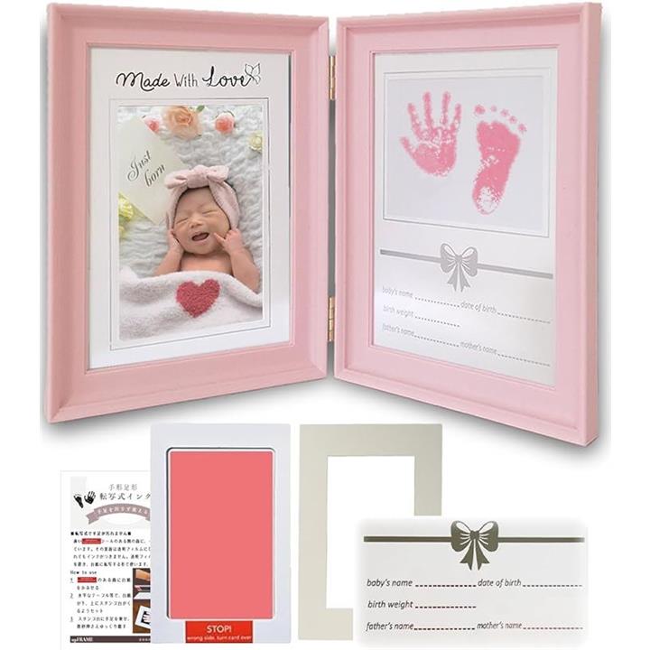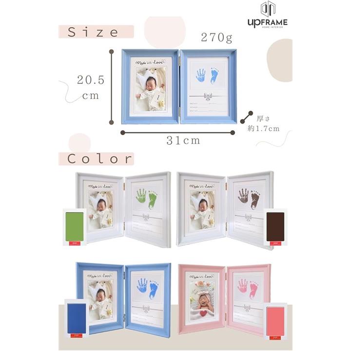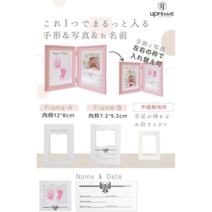 フォトフレーム 手形スタンプ 赤ちゃん 割れにくい樹脂フレーム 写真立て 汚れない 手形足形 置き掛け兼用 ベビーフレーム 出産祝い 命名書 ベビー用品 ジャストボーン