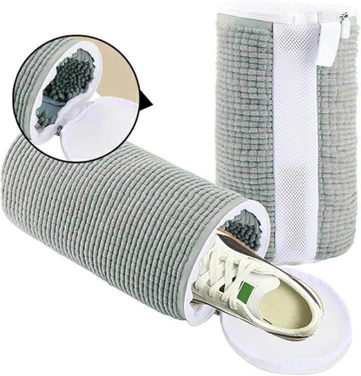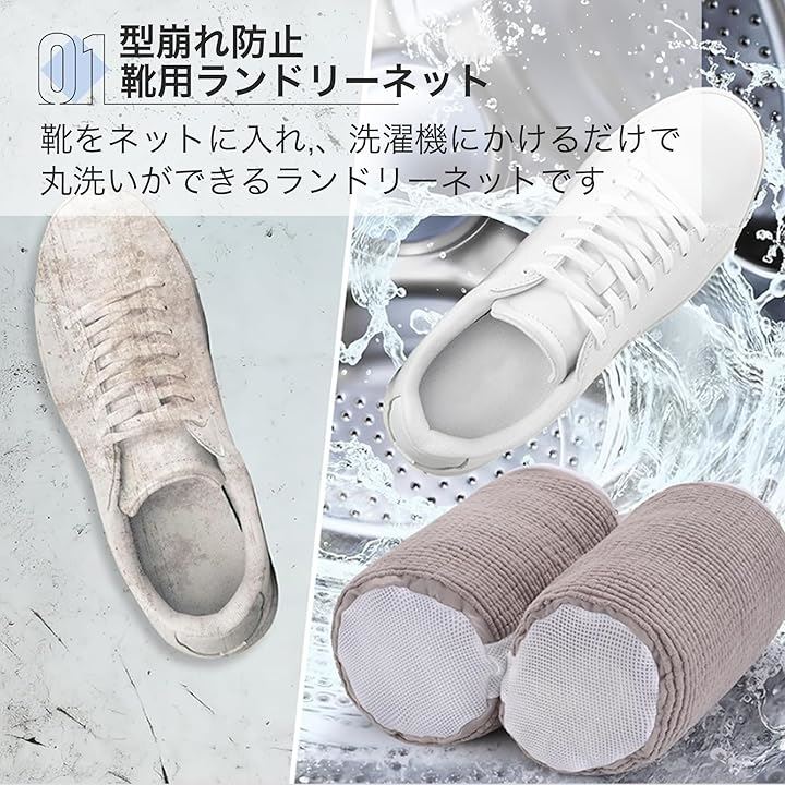 靴洗いネット 洗濯袋 靴用 上履き ランドリーネット 洗濯機 円筒型 型崩れ防止 グレー 2個セット