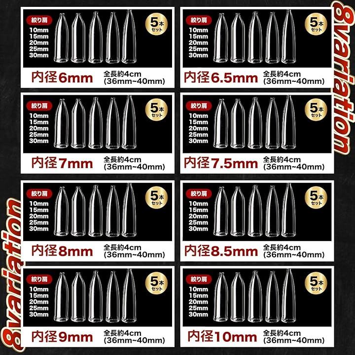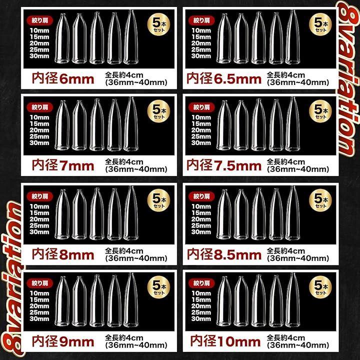 ヘラウキ 成形器 ガラス管 耐熱ガラス ヘラブナ 釣り 5サイズセット 絞り寸法10mm 15mm 20mm 25mm