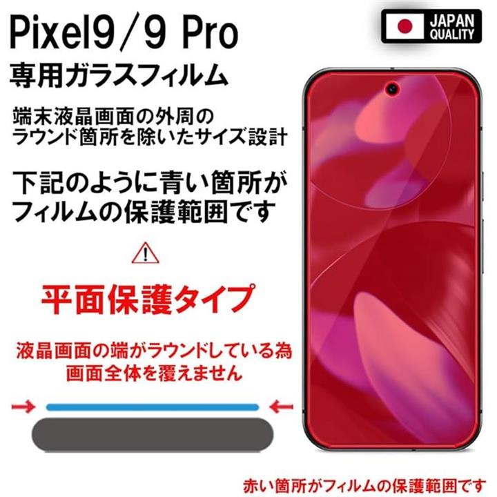 2枚セットフィルム Google Pixel 9/9 Pro 用 ガラスフィルム 保護フィルム 強化 高透過 高光沢 日本製 旭硝子 硬度10H 2.5Dラウンドエッジ 自動吸着 気泡ゼロ 飛散防止 指紋防止 撥水撥油 3D タッチ For