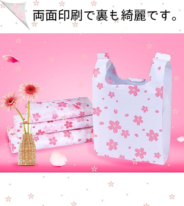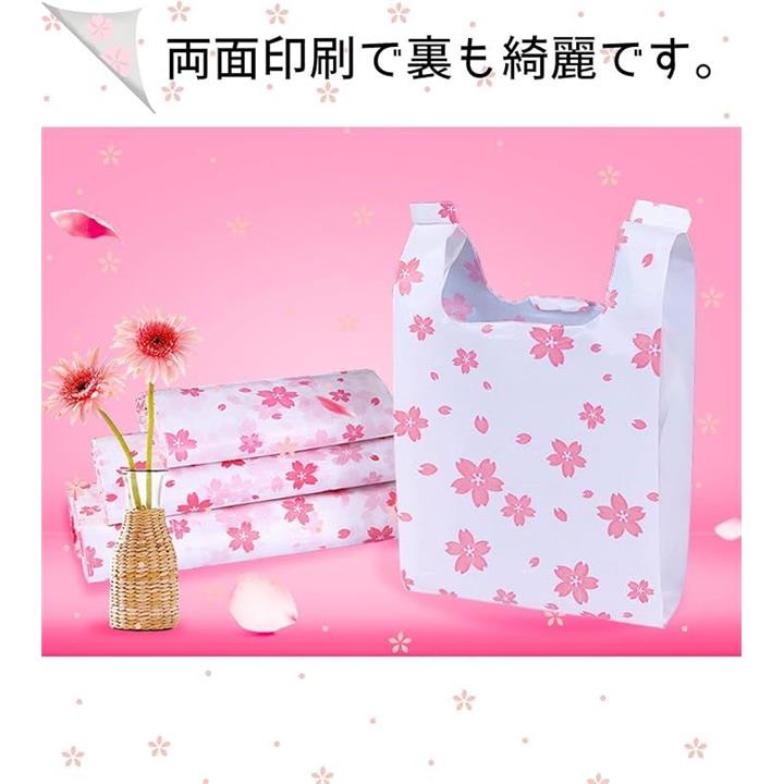 手提げ袋 レジ袋 48x26x14cm さくら 100枚 両面印刷 フック穴付 ビニール袋