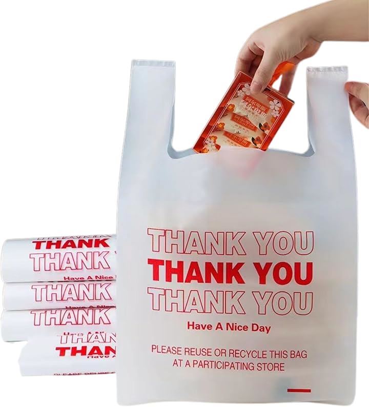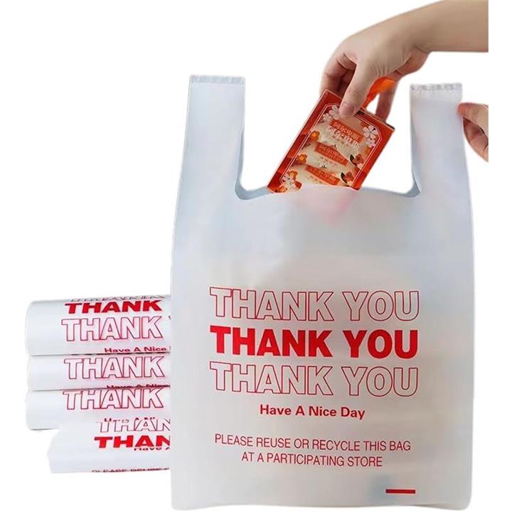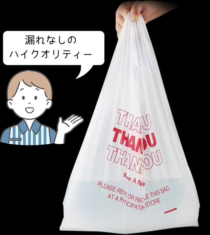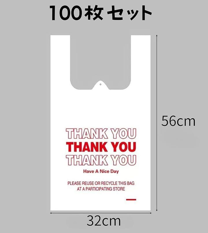 Thank you 手提げ袋 レジ袋 56x32x16cm ありがとう 片面印刷 フック穴付 ビニール袋