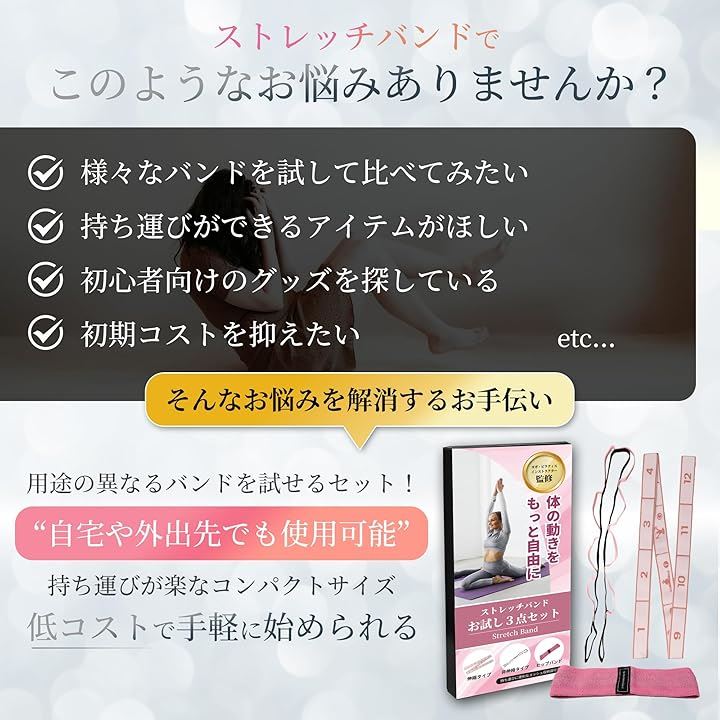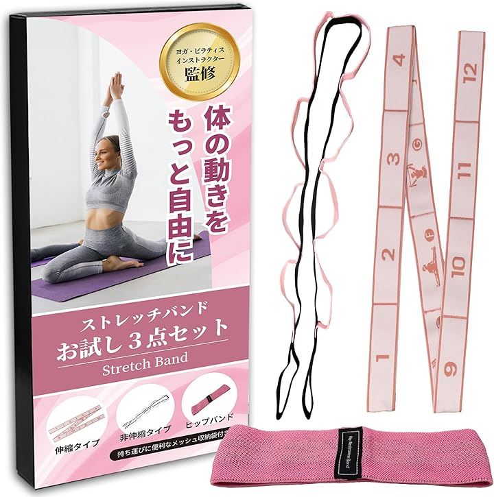 ヨガ&ピラティス インストラクター監修 ストレッチバンド ヨガストラップ トレーニング フィットネス エクササイズ 収納袋付き ヨガグッズ 3点セット