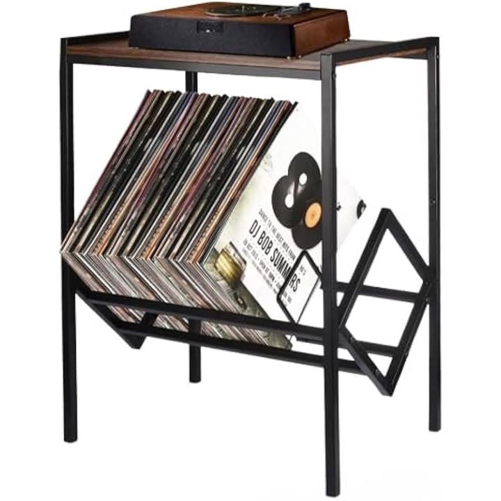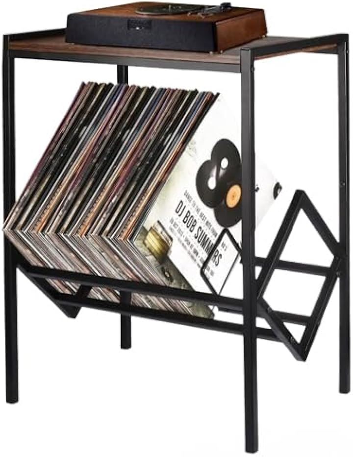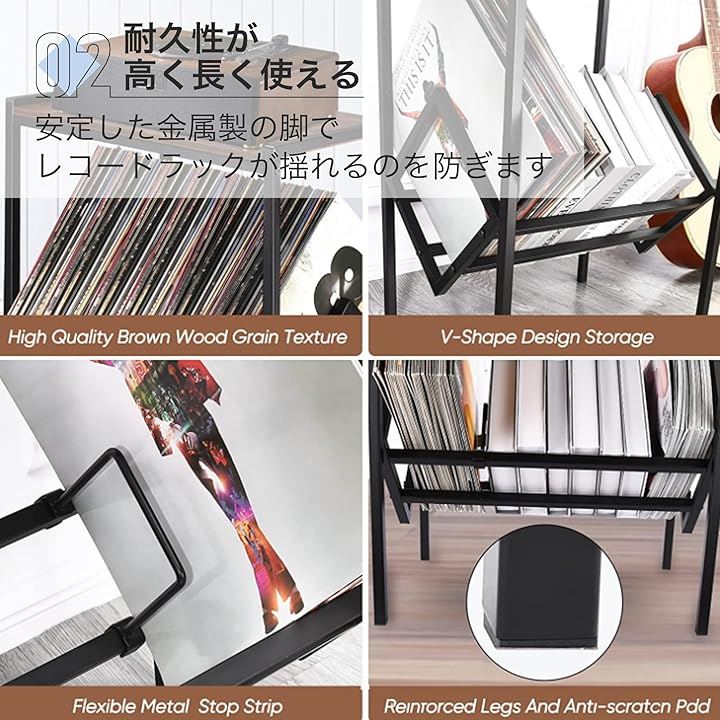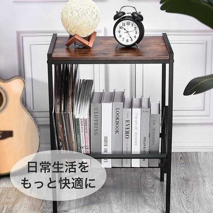 レコードラック ブックスタンド レコードプレーヤー シェルフ スチールラック 床置き 金属製 ブラック