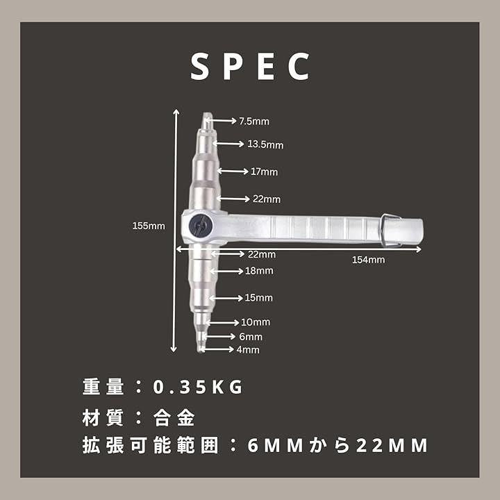 チューブエキスパンダー 銅管 拡張 パイプ拡張 工具 配管 手動 DIY 銅パイプ
