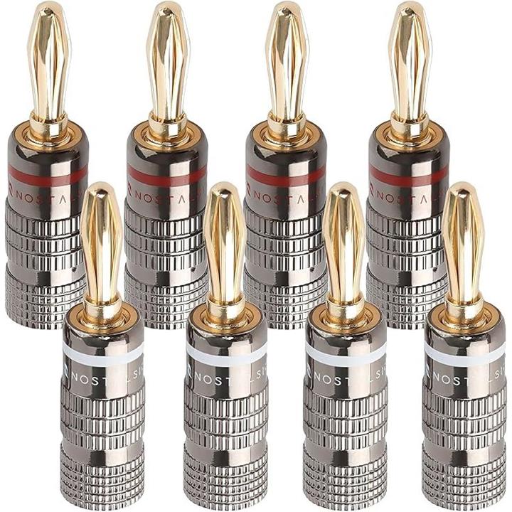 バナナプラグ 赤+白セット ソルダーレス 24k金メッキ 簡単取り付け ダブルネジ固定 12AWG~18AWG対応 オーディオ用 スピーカー/アンプ用