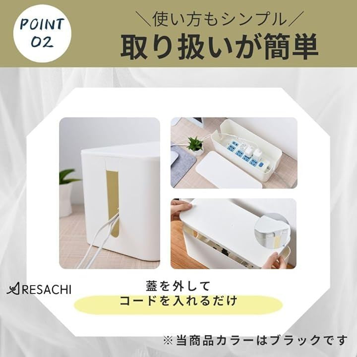 ケーブル収納ボックス コード隠し 配線隠し コンセントボックス コード収納 ブラック