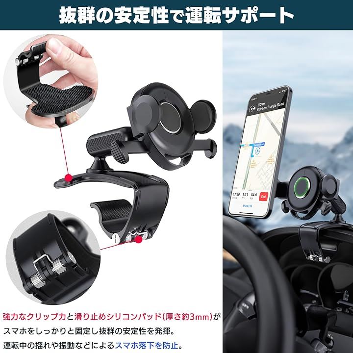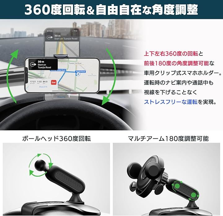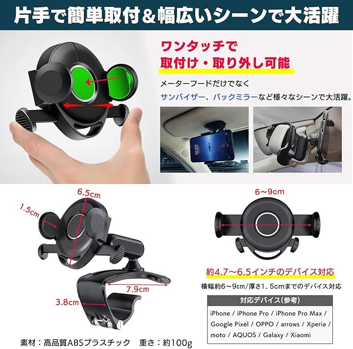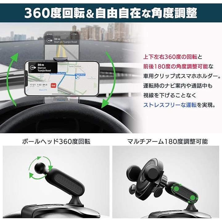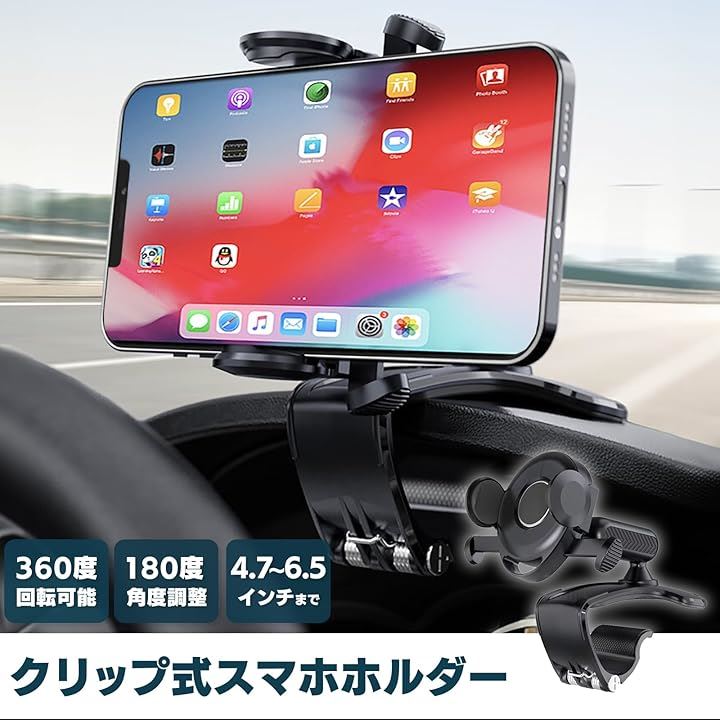 スマホホルダー 車 クリップ 車載スマホホルダー 360度回転 4.7~6.5インチ iPhone Google Pixel OPPO arrows Xperia moto AQUOS Galaxy Xiaomi 対応