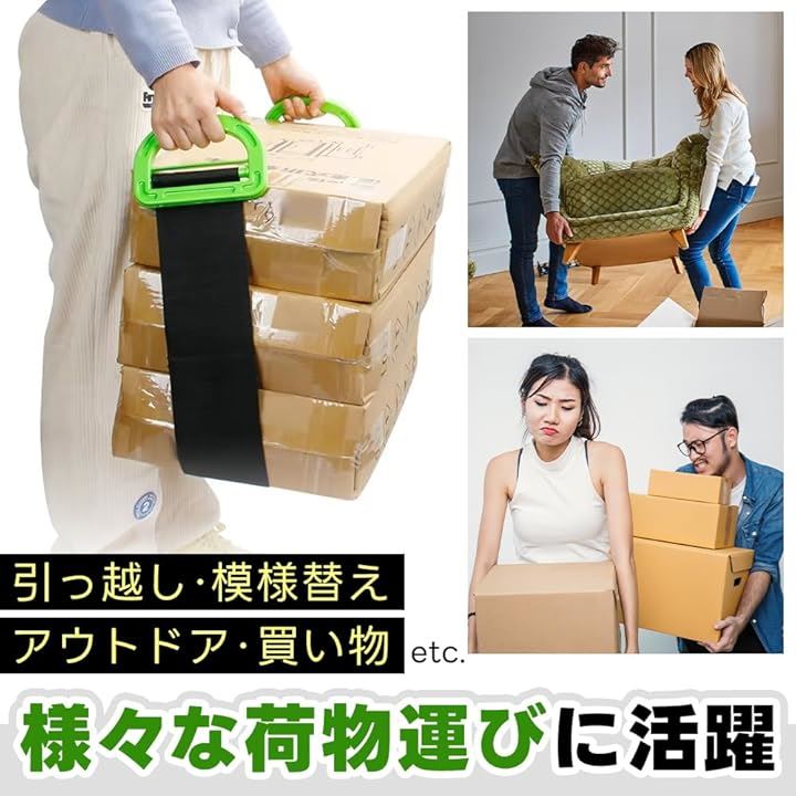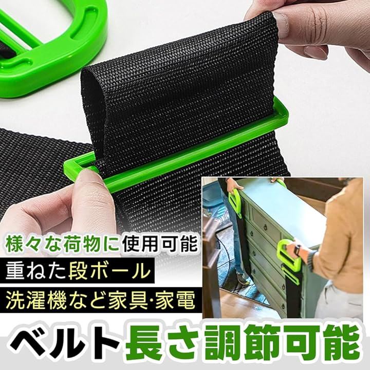 荷物運搬用ベルト 2個 大型段ボール 家具家電 引っ越し 作業 大掃除 サイズ調節可能 軍手付き