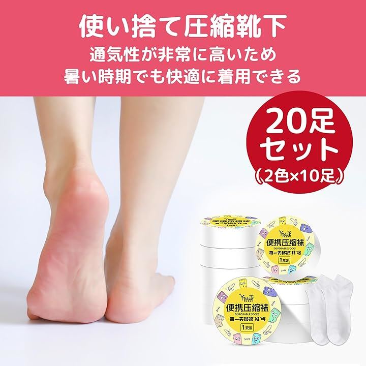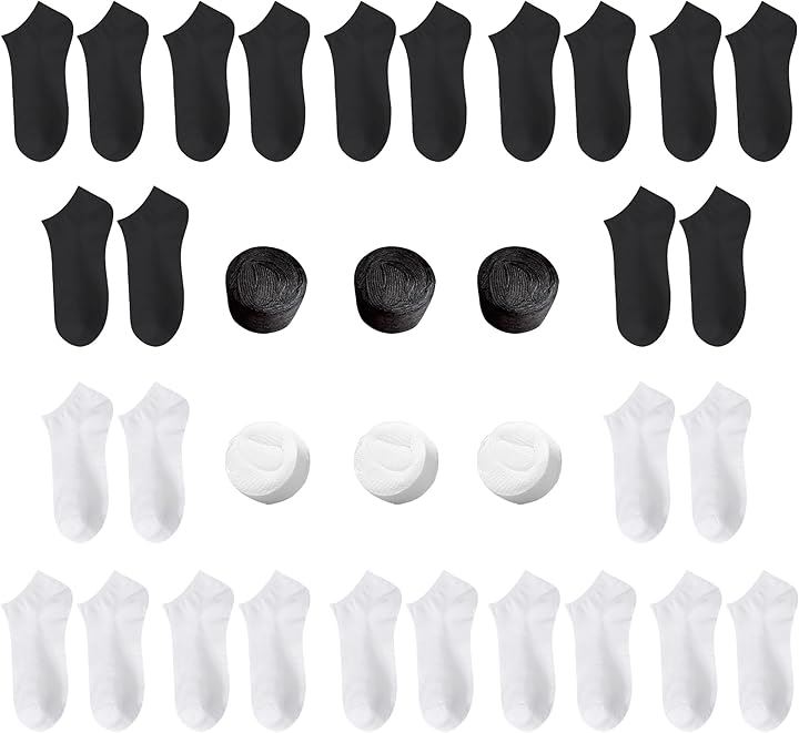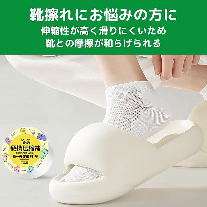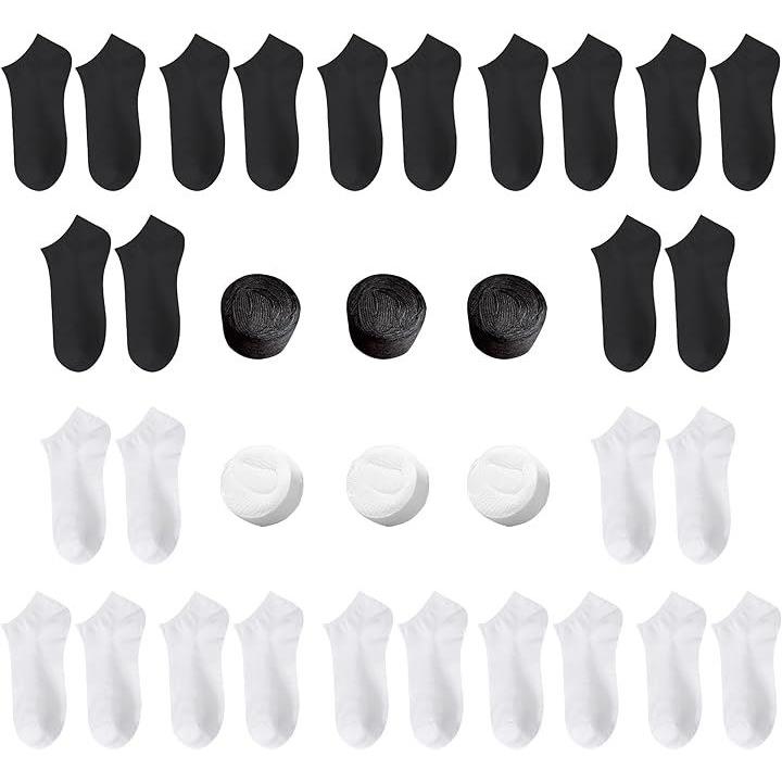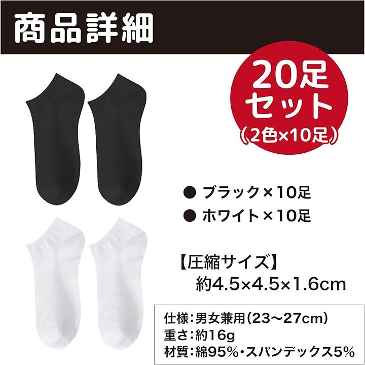 Edison Brain 95%綿 使い捨て 圧縮 靴下 20足セット 23-27cm ショート アンクル ソックス ブラック ホワイト コットン素材 通気性 蒸れにくい 旅行 入院 キャンプ 防災グッズ 小型 軽量 コンパクト