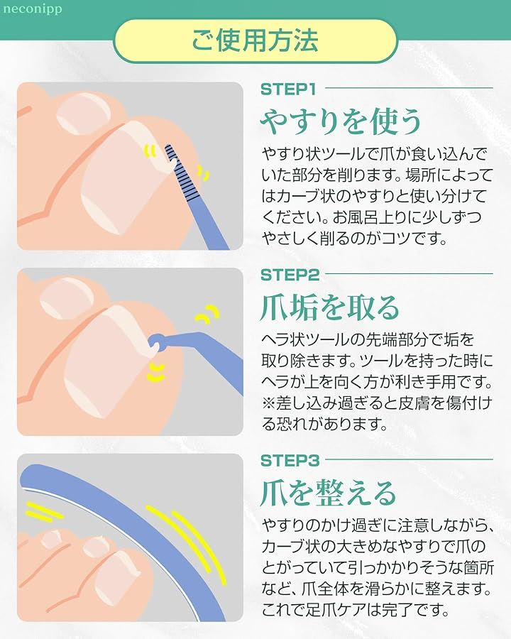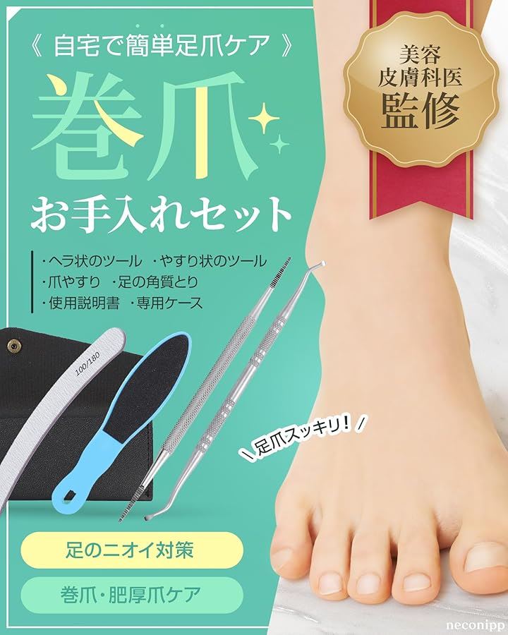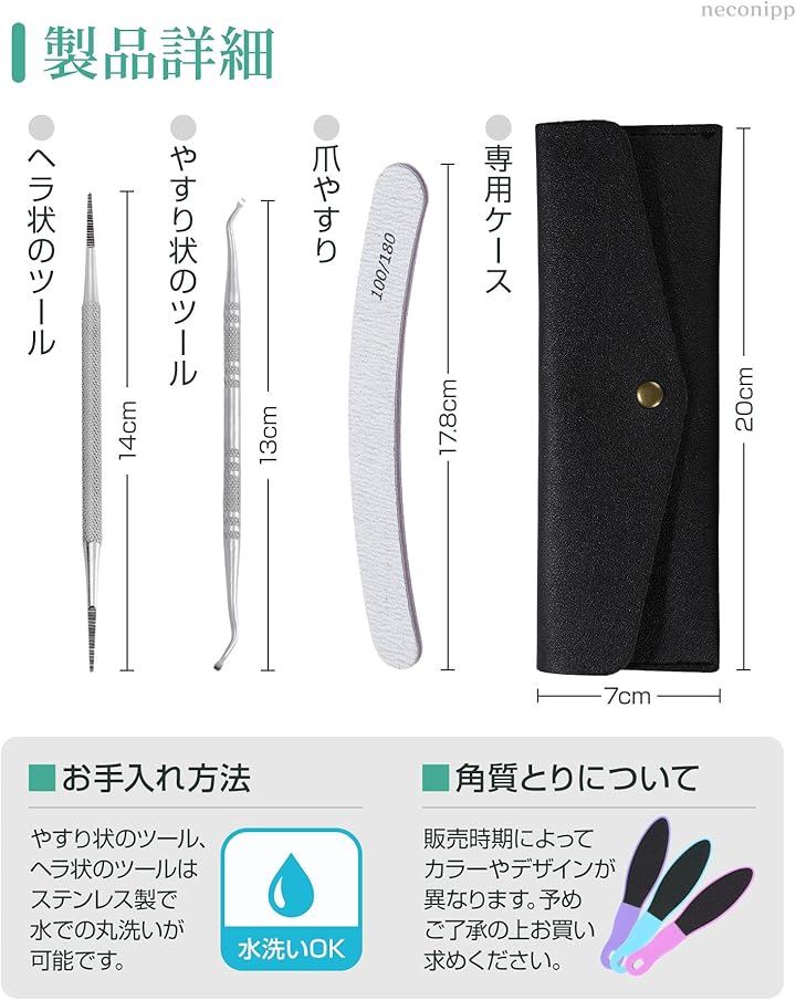 ネイルケアセット 巻き爪やすり 爪垢とり& お手入れセット 肥厚爪 厚くなった爪 巻爪 収納ケース付き 父の日