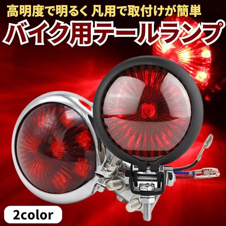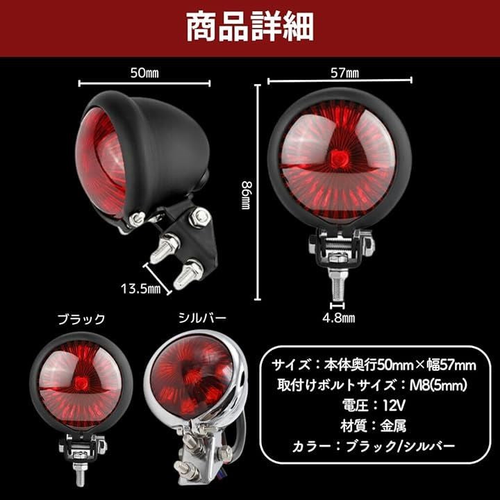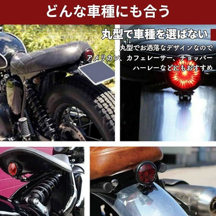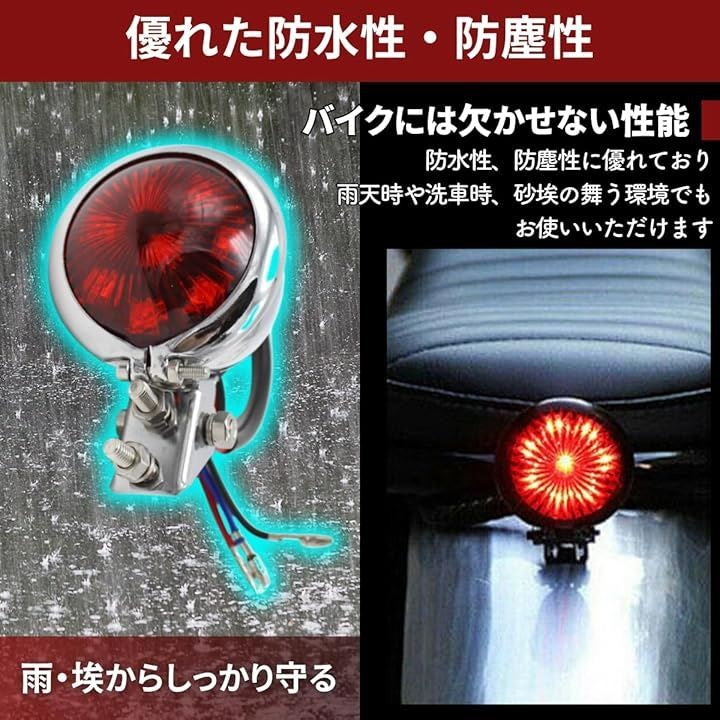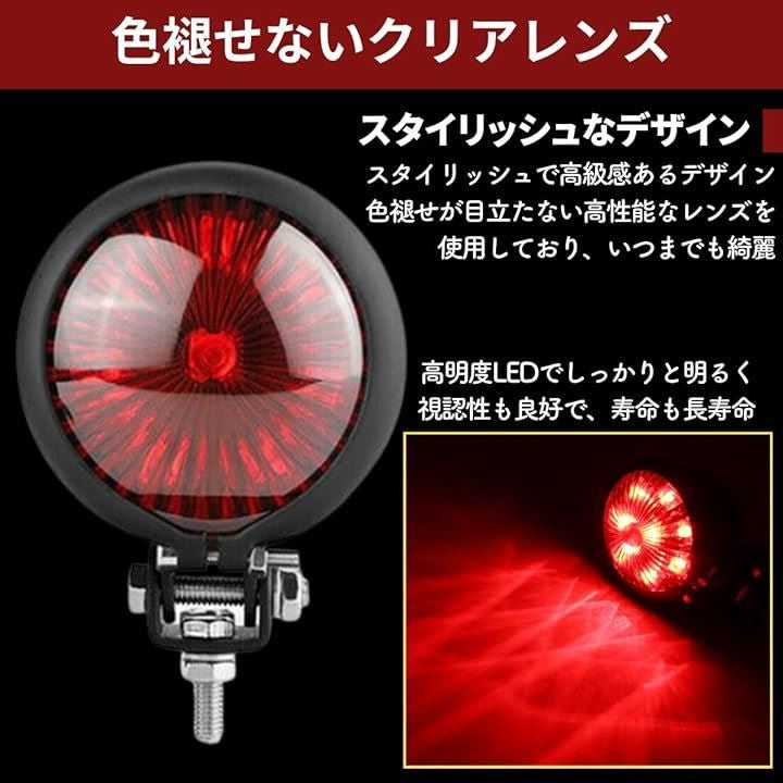 バイク テールランプ テールライト リア LED ブレーキランプ 汎用 丸型 赤 小型 アメリカン ストップランプ 12V ドレスアップ カスタム レッド