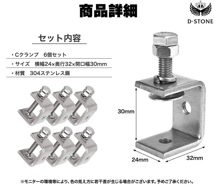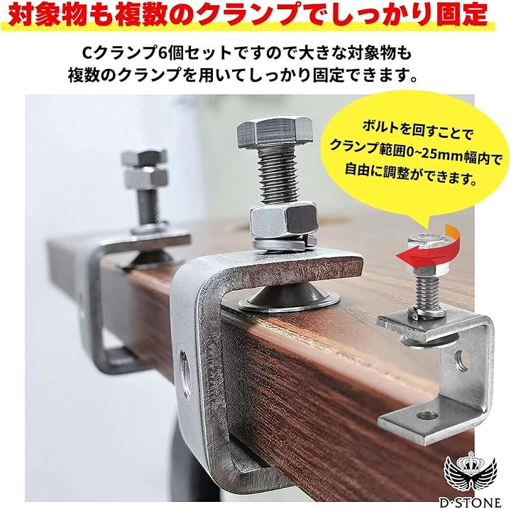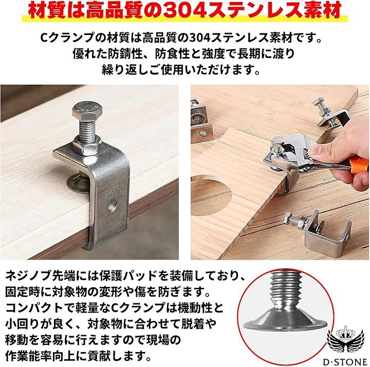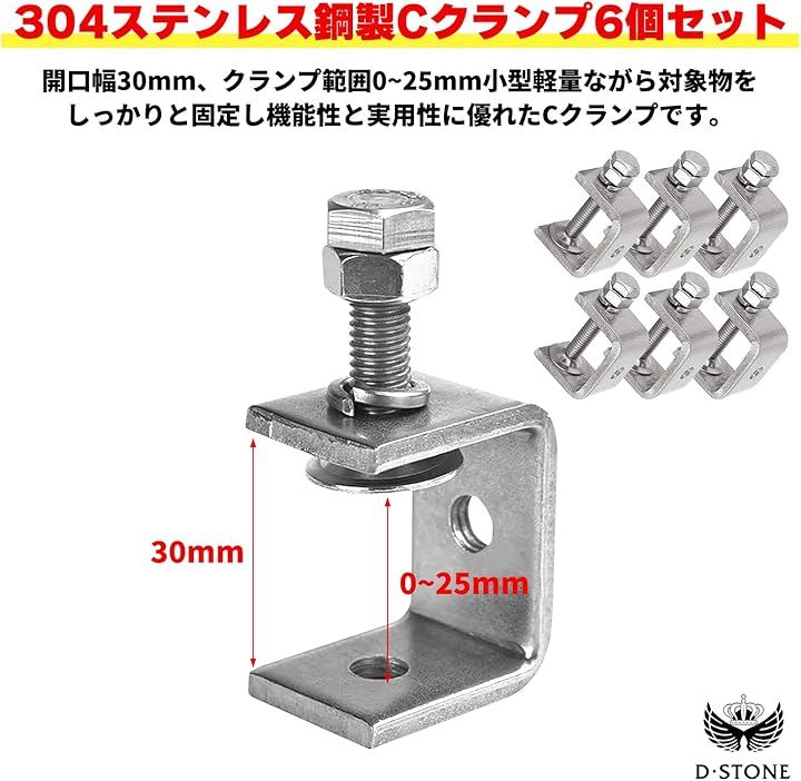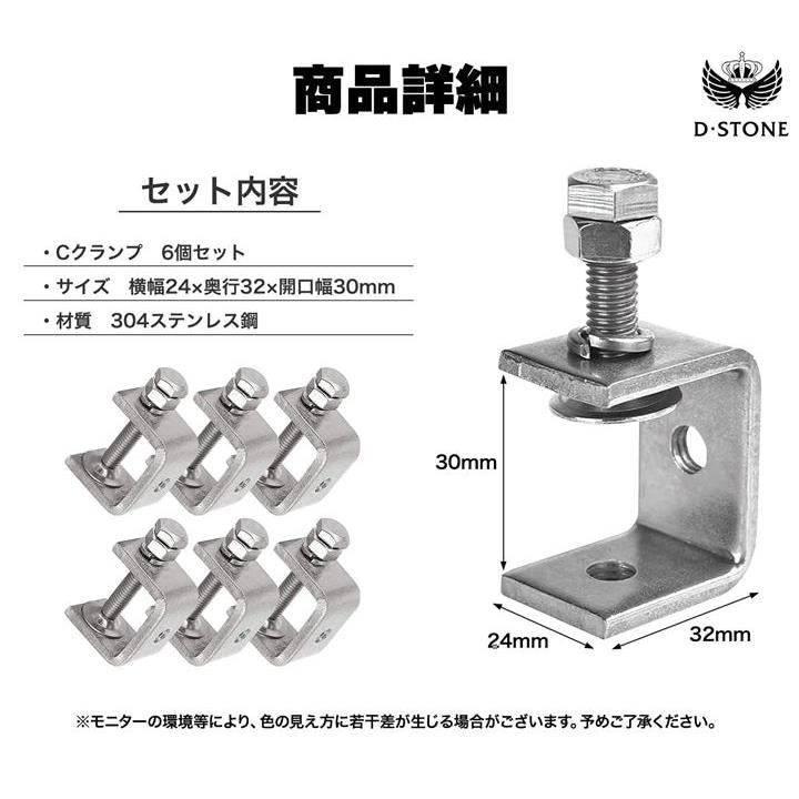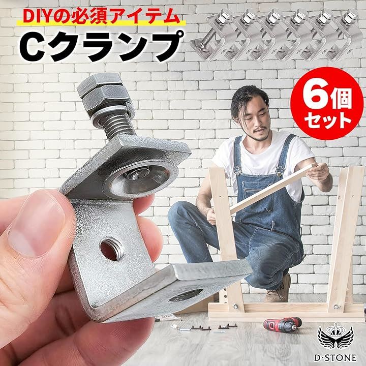 コンパクトで使いやすいCクランプ 30mm ワイド 木工 接着 固定 溶接 ズレ防止 DIY 6個セット