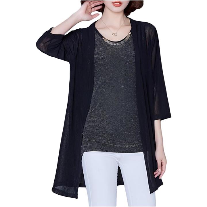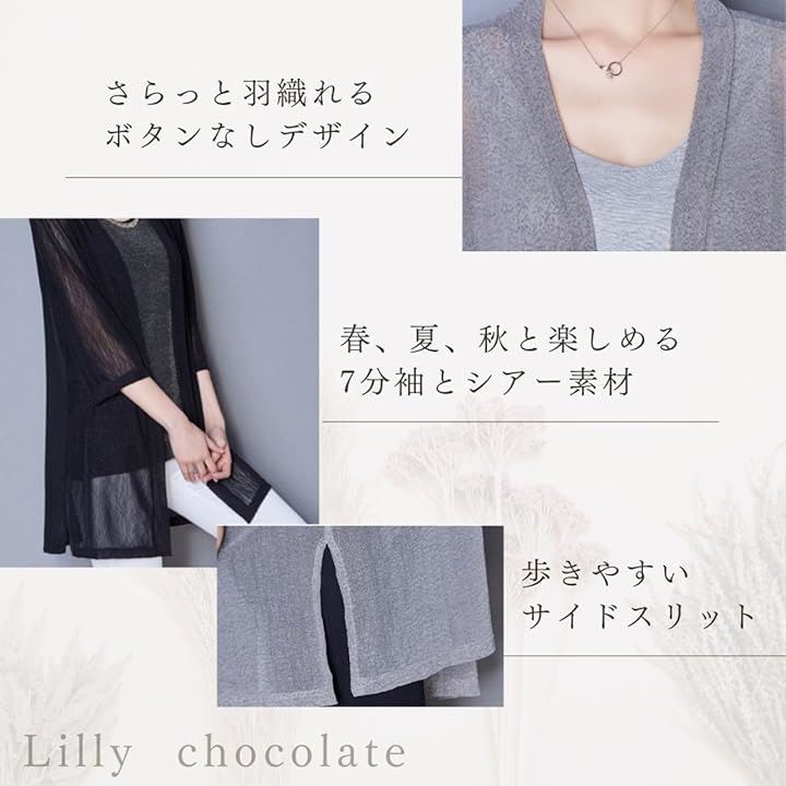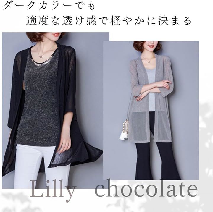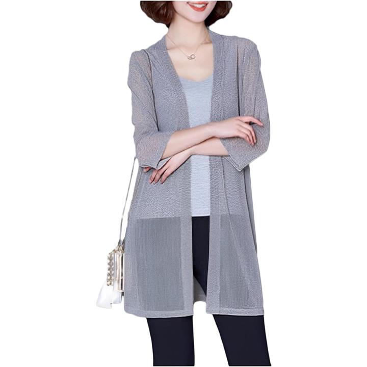 ロングカーディガン レディース 秋 秋冬 夏 春 春夏 シアー袖 7分袖 トップス 前開き カーデガン 七分袖