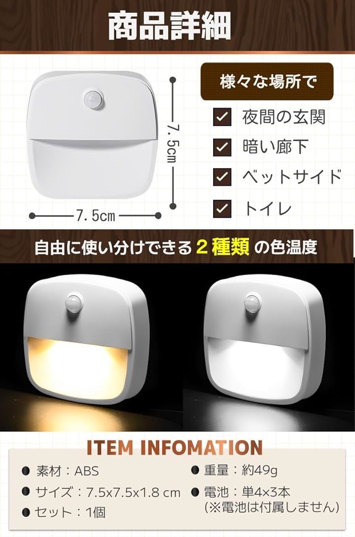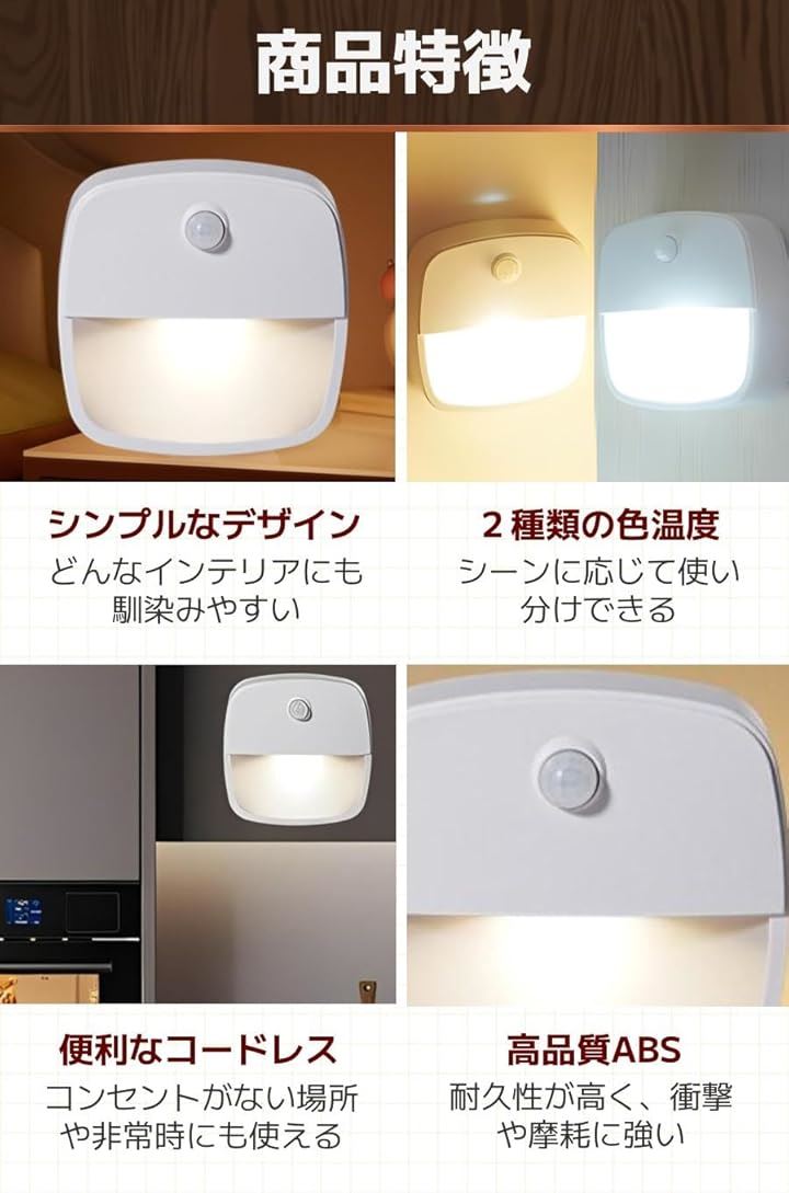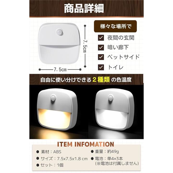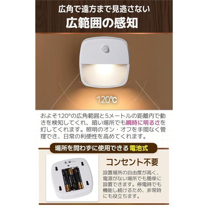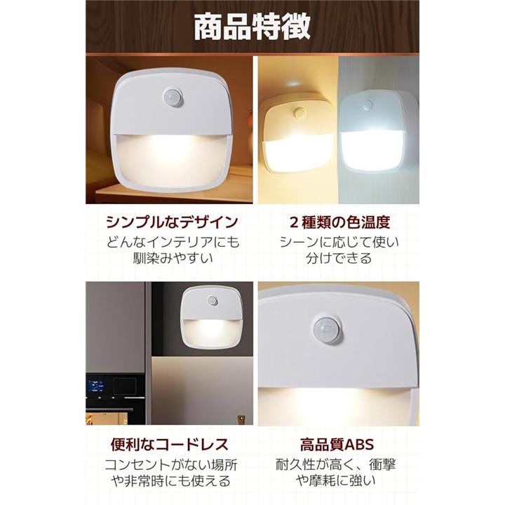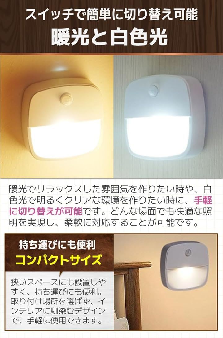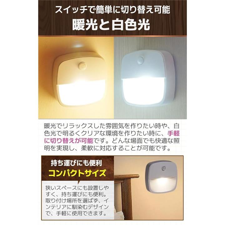 センサーライト 室内 人感センサー 足元ライト ベッドルーム 感知式 白光 暖光