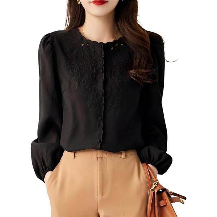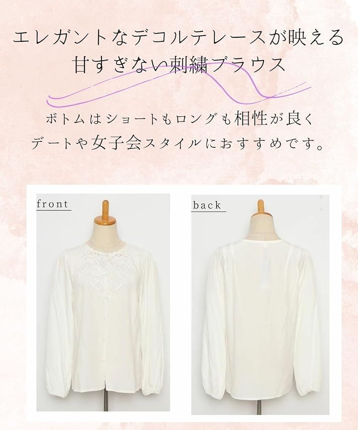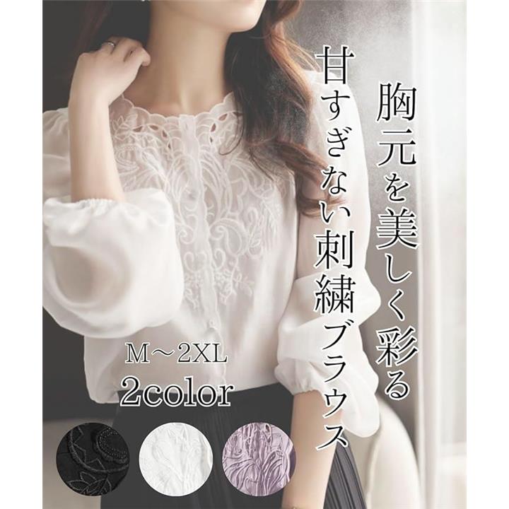「華やかな刺繍xエレガント」トップス ブラウス シャツは、春や秋にぴったりの上品でフェミニンなレディースアイテムです。