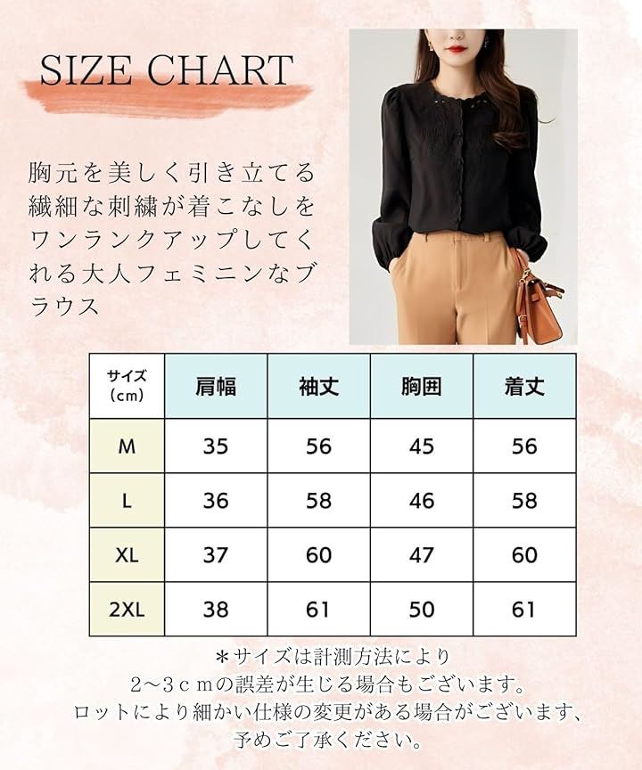 10代、20代、30代、40代、50代、60代の女性におすすめのこのブラウスは、ゆったりとした着心地で、演奏会やオフィス、カジュアルシーンでも活躍します。