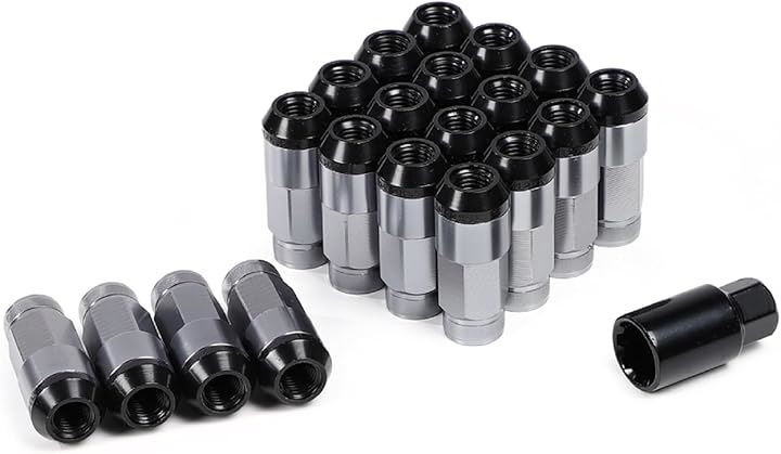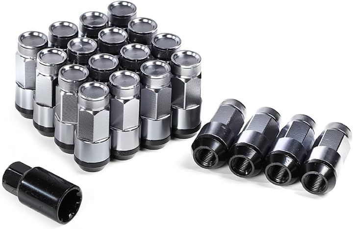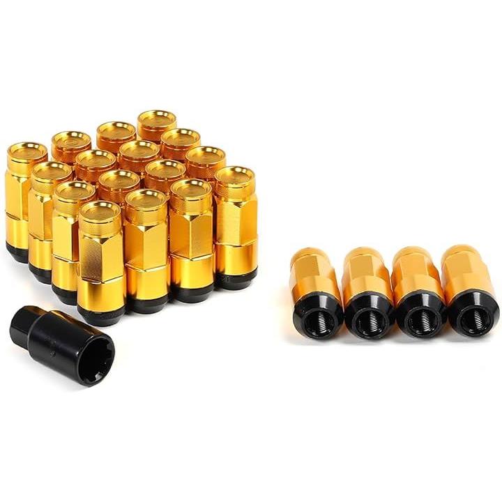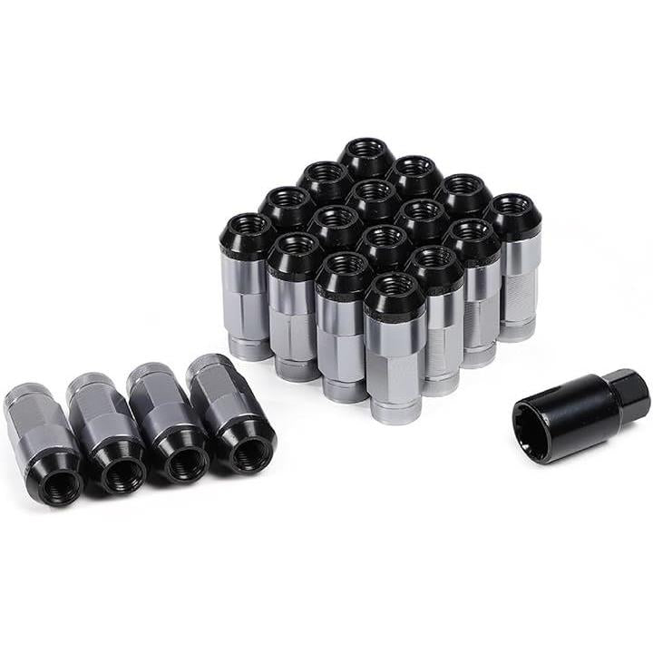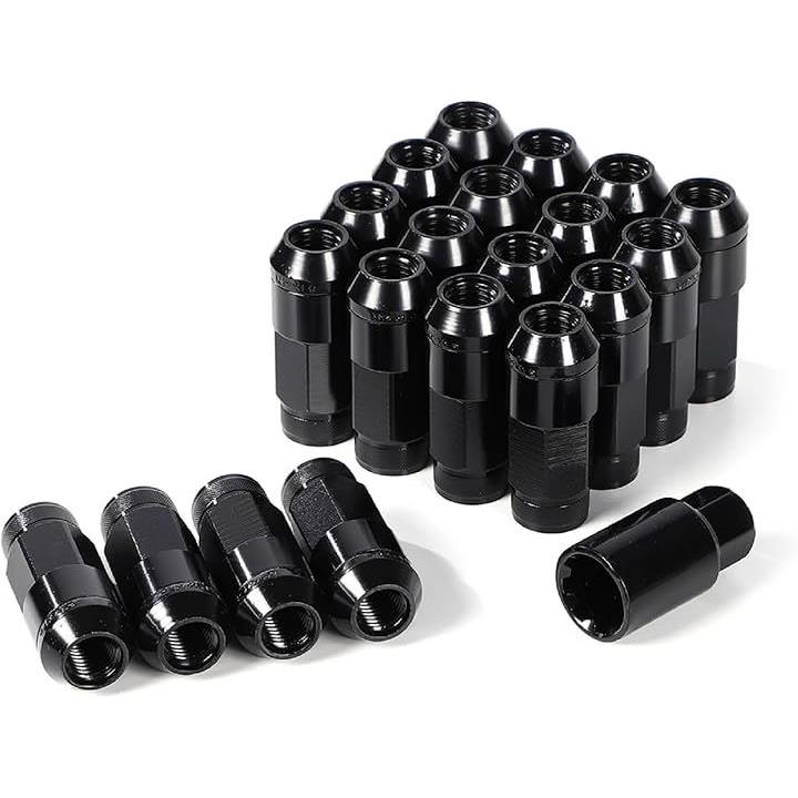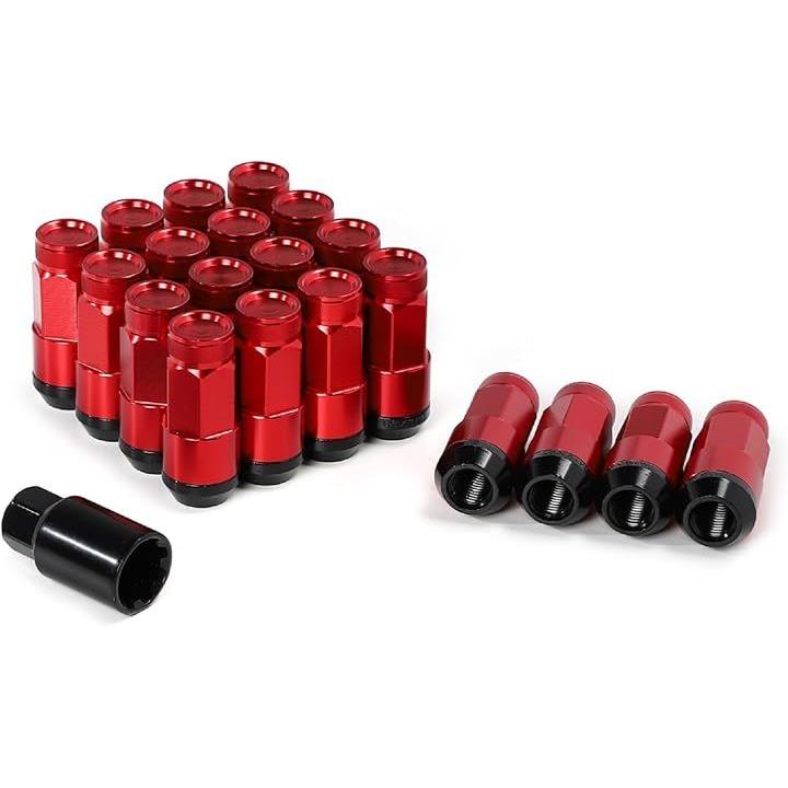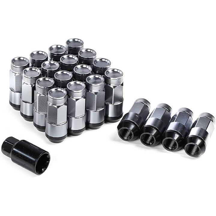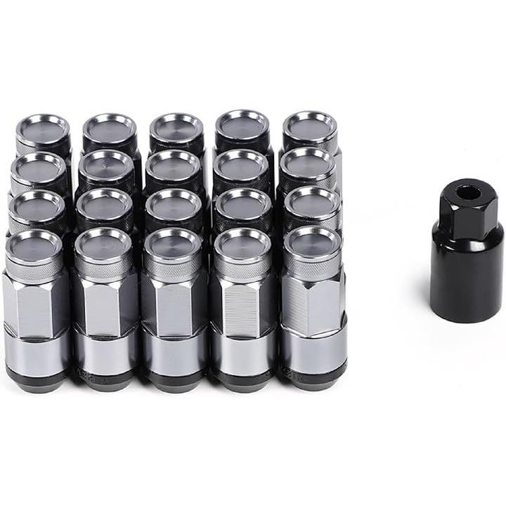 スチール製 ホイールナット スチールナット タイヤナット レーシングナット 上下二分割 アルミ ハイブリット 分割式 ロックナット 貫通ナット カラーナット 盗難防止 M12 x P1.25 専用ソケット付き 20本セット