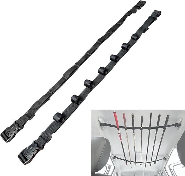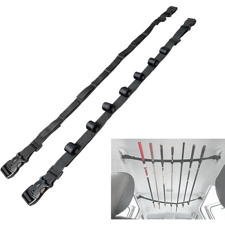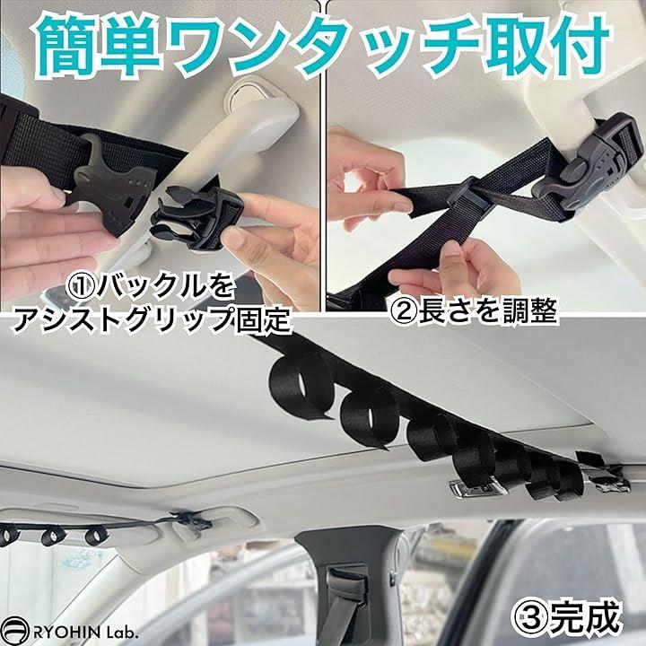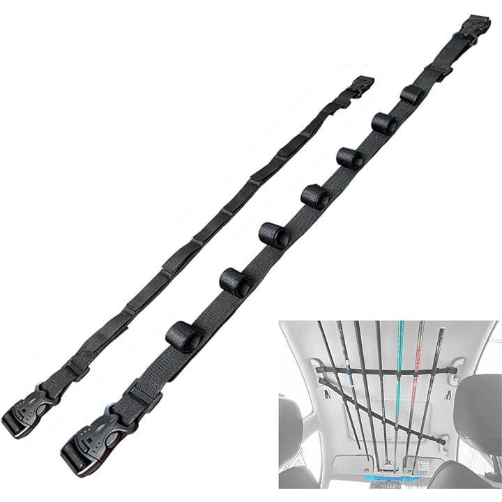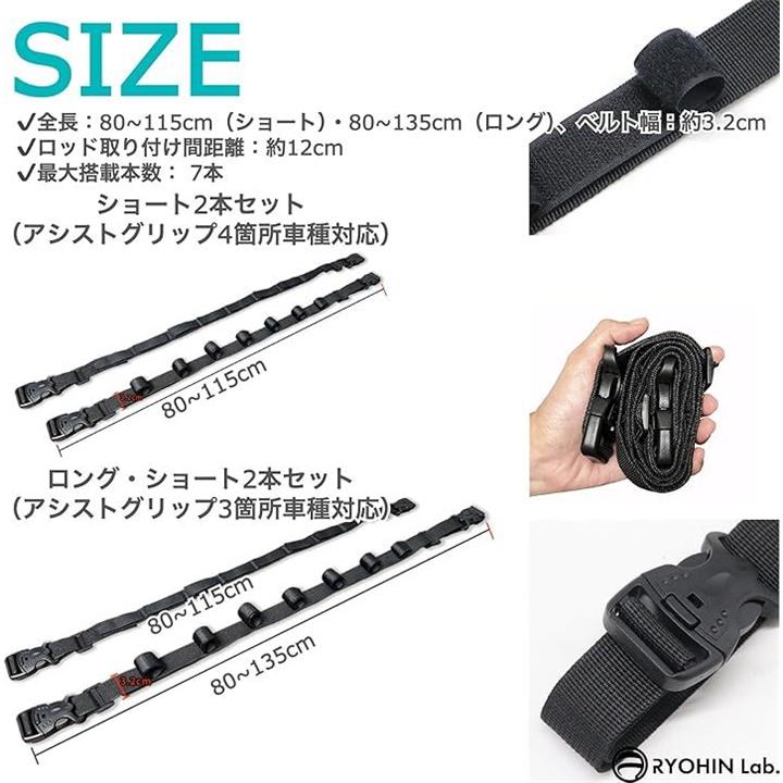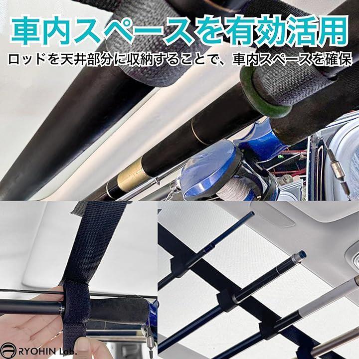 良品ラボ ロッドホルダー 車 ロッドがすべらない 天井 釣り竿 固定 マジック式 ストラップ 収納 釣り道具 ロッドベルト ロッドキャリー ワンタッチ スペース有効活用 7本収納