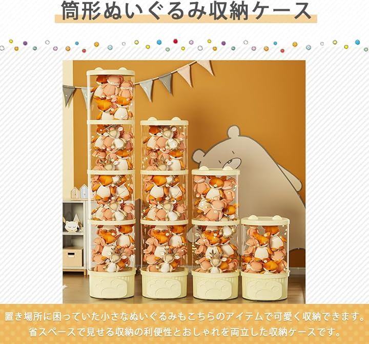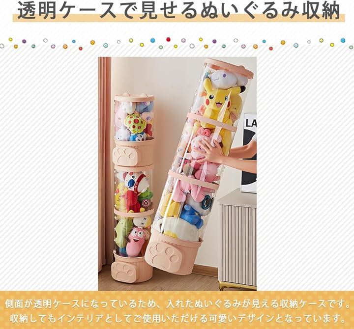 ぬいぐるみ 収納 大容量 円柱 透明 タワー 収納ケース 筒 ディスプレイケース おしゃれ 見せる収納