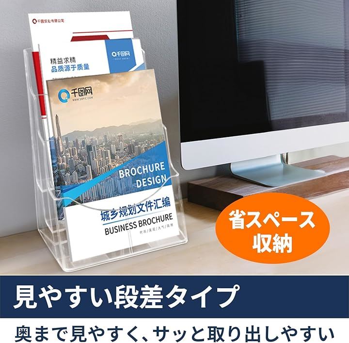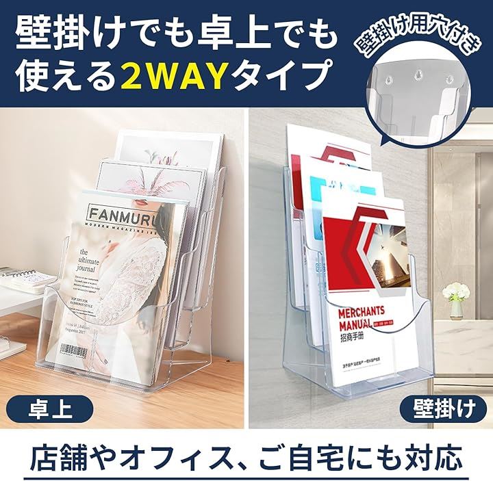 カタログスタンド A4対応 4段 軽量高耐久 透明ラック 卓上壁掛け2WAY パンフレット チラシケース