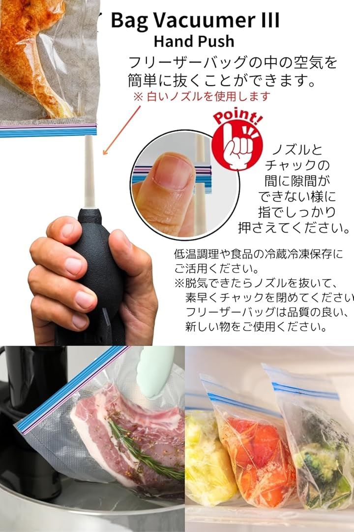 1台2役 ジップロック 空気抜き 付属のノズルに交換すれぱエアーブロワーとして使用可能 低温調理器 真空パック機 フリーザーバッグ 真空ポンプ エアーダスター