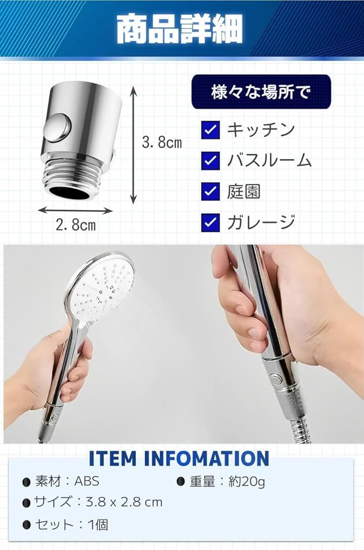 シャワー ストップボタン 止水アダプター 止水栓 ストッパー 交換 菜園 庭 オンオフ