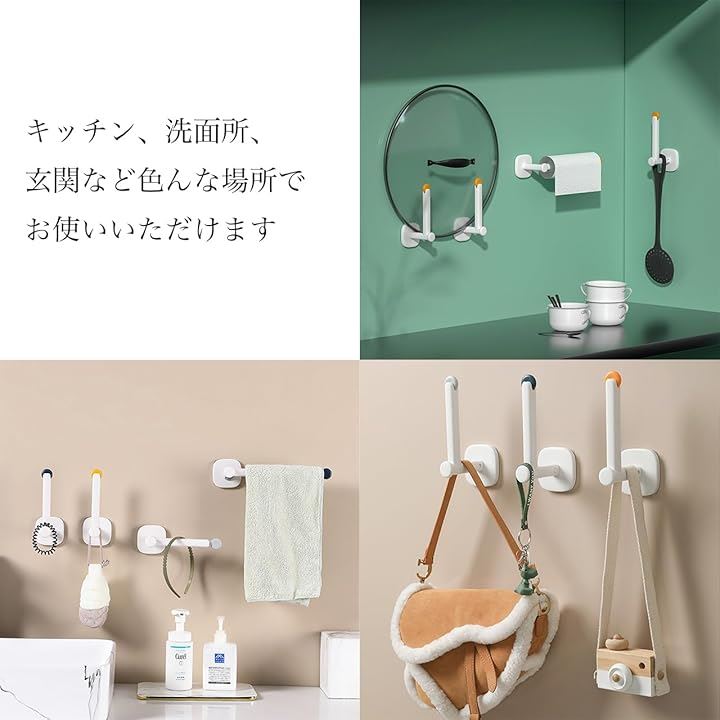 壁掛け ハンガー 2個セット 多機能 多用途 壁を傷つけない ウォール フック 整理 整頓 省スペース キッチン 洗面所 バスルーム 玄関 寝室