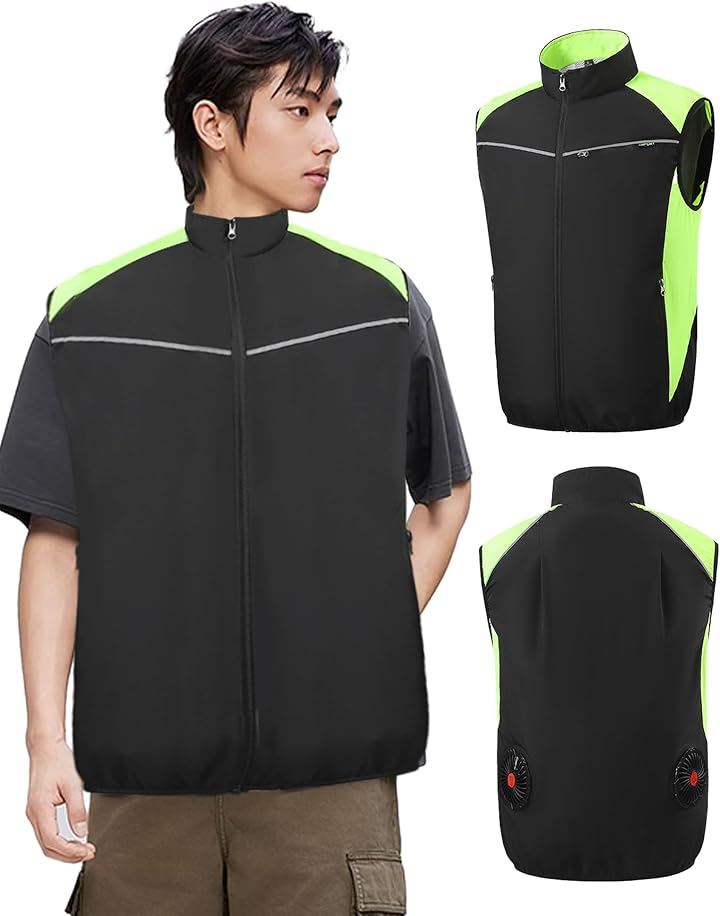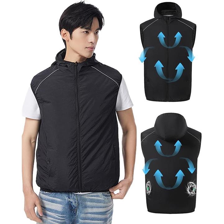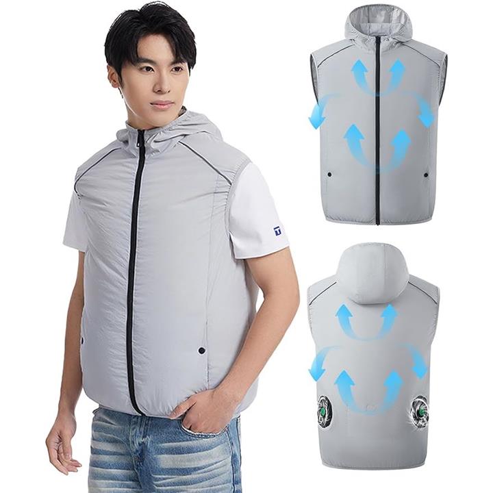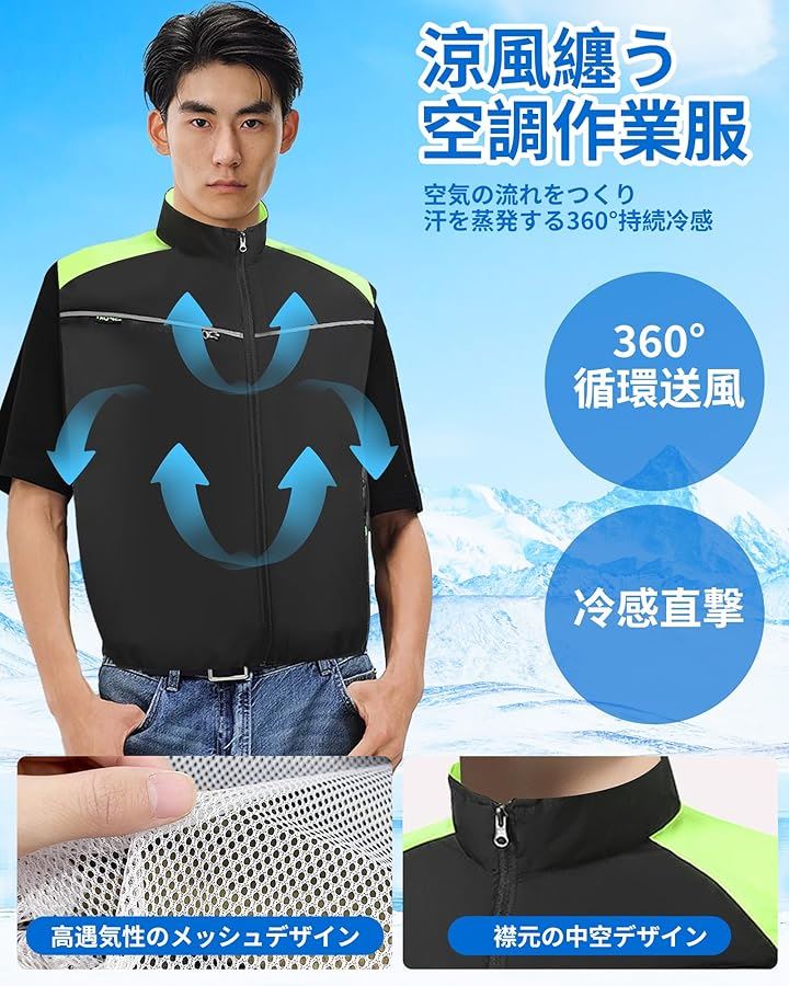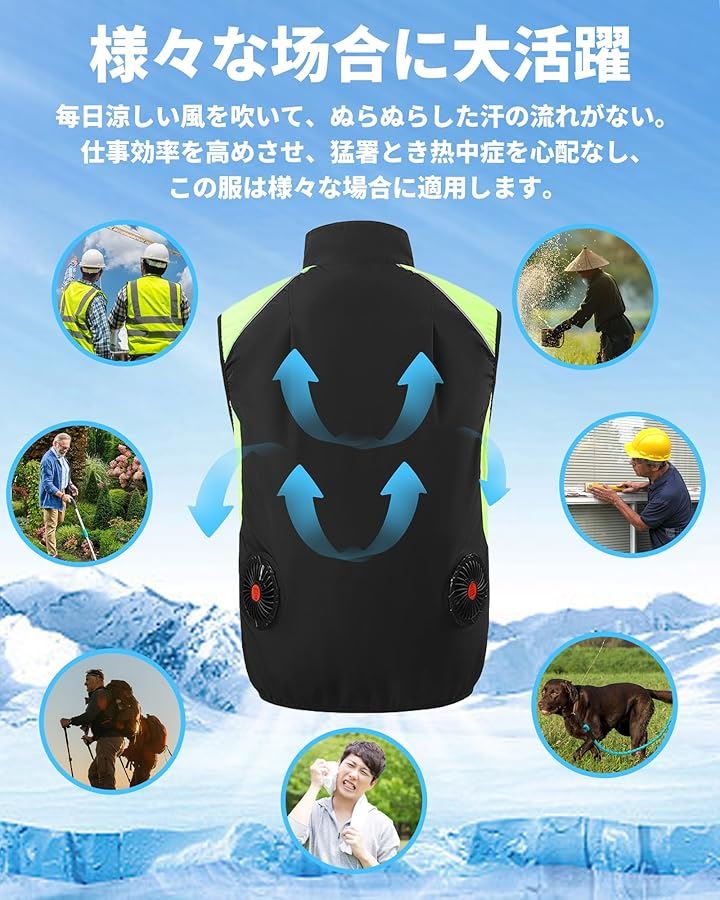 この冷風服を着用で、真夏の季節を楽しく過ごす。