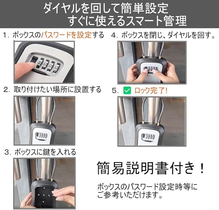 ダイヤル式の暗証番号で鍵を管理できセキュリティレベルが求められる場面で役立ちます。