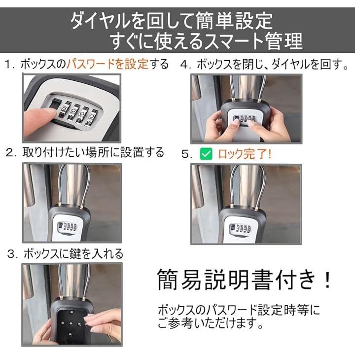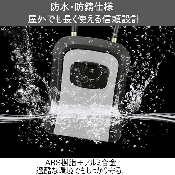 「業務用鍵管理ツール」防水・防錆仕様のキーボックスは、堅牢なアルミ合金とABS樹脂を採用したダイヤル式鍵付きボックスで、玄関や倉庫の鍵入れケースとして個人の自宅やガレージでの鍵管理に役立つのはもちろん、不動産業での物件内見時の鍵管理や建設業での現場事務所や工事車両の鍵保管、清掃業での部屋や倉庫の鍵管理、ビル管理業での巡回ルートの鍵管理など法人企業でも幅広く活用され、ドアノブやフェンス、壁掛けなど設置場所を選ばず工具不要で簡単に設置できるうえ、屋外での使用にも耐える高耐久設計により雨風にさらされる過酷な環境でも錆びにくく、4桁の暗証番号で鍵をしっかり保護できるため複数人での共有や受け渡しもスムーズになり、業務の効率化にも貢献する鍵付き収納ボックスです。