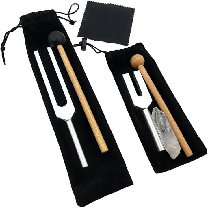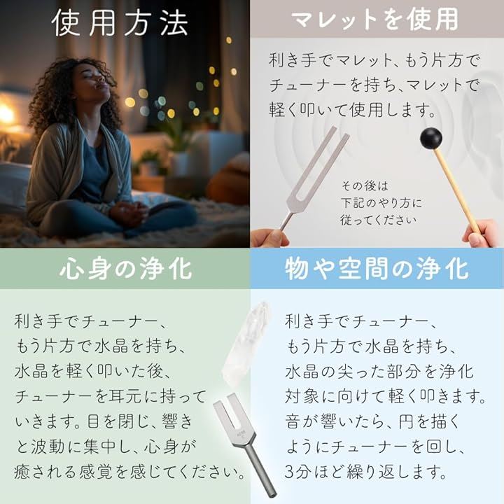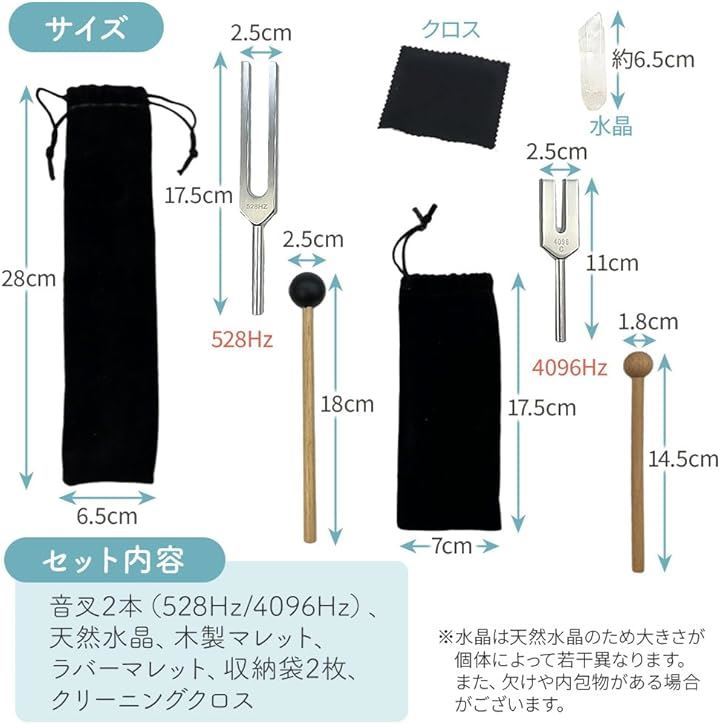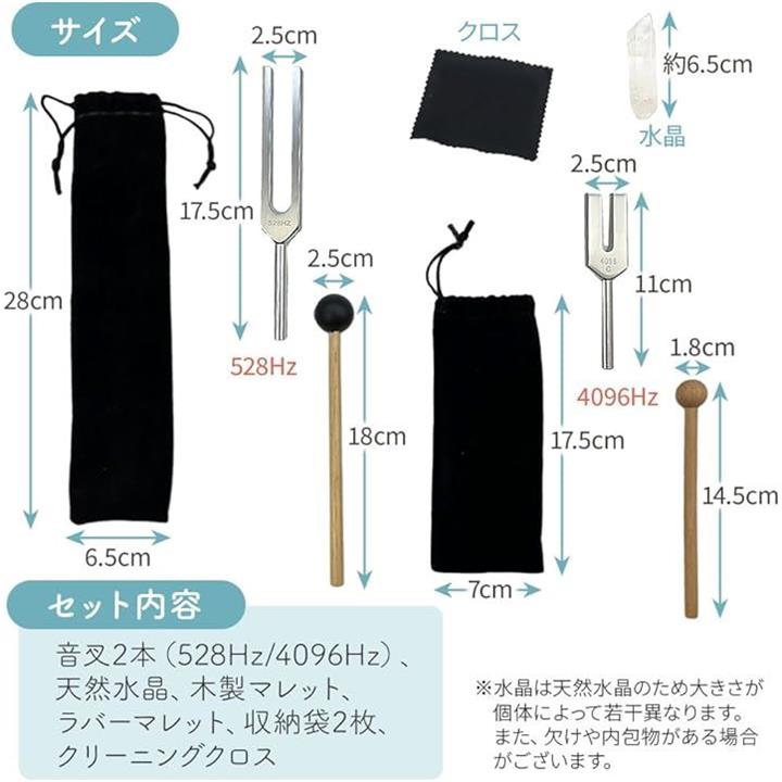 クリスタルチューナー 音叉 ヒーリング セット 水晶 マレット 528hz 4096hz 瞑想 ポーチ付き
