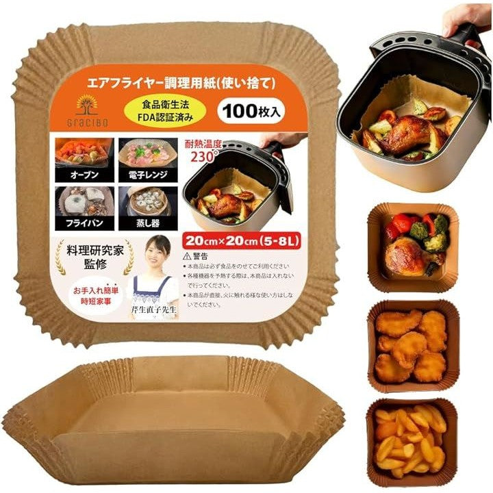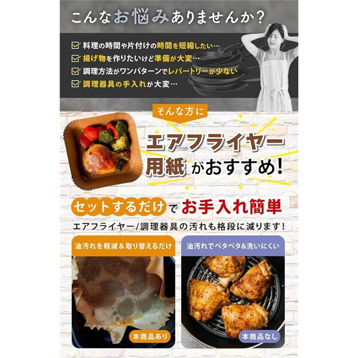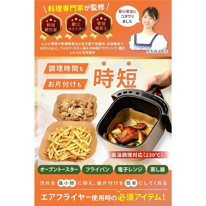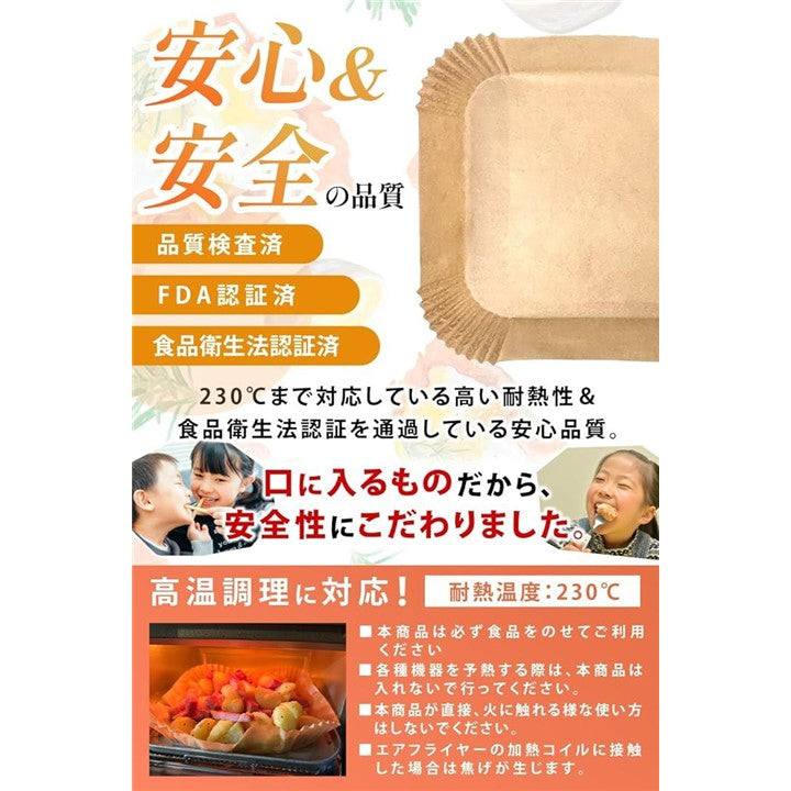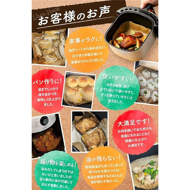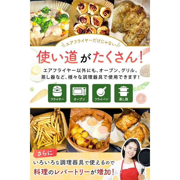 エアフライヤーシート 料理研究家監修 クッキングシート エアフライヤー用紙 100枚入 食品衛生法適合 耐熱温度 230℃ オーブンシート 蒸し器 天ぷら敷紙