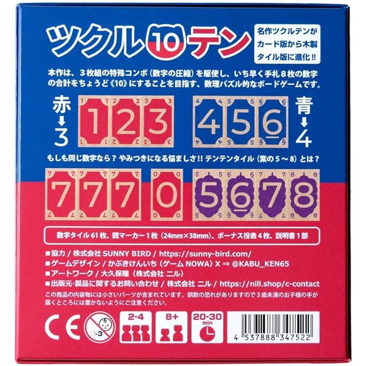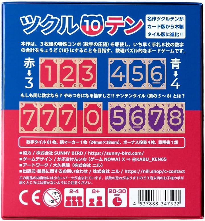 ツクル10テン TSUKURU TEN 2-4人用 20-30分 8才以上向け ボードゲーム 木製タイル いち早く手札8枚の数字の合計をぴったり10にしよう