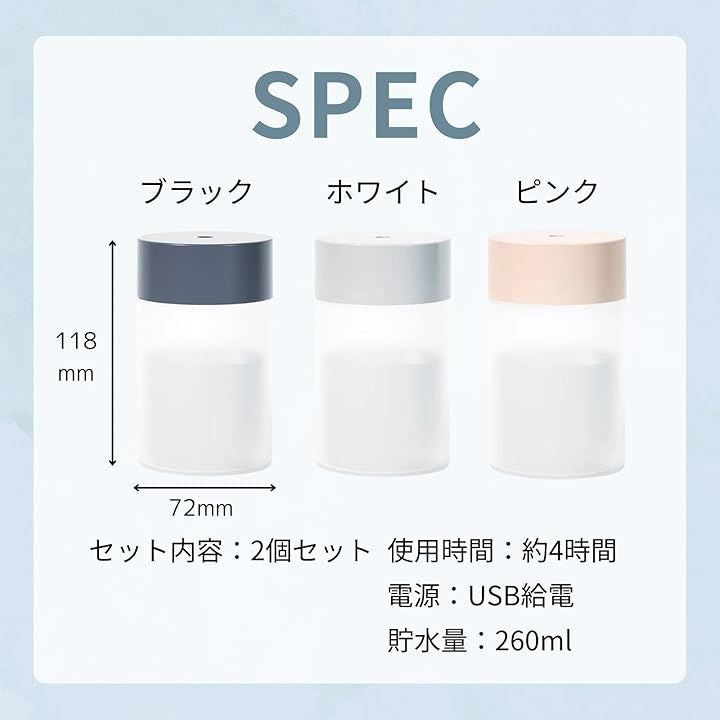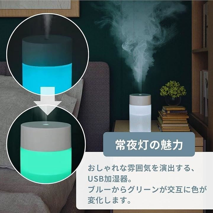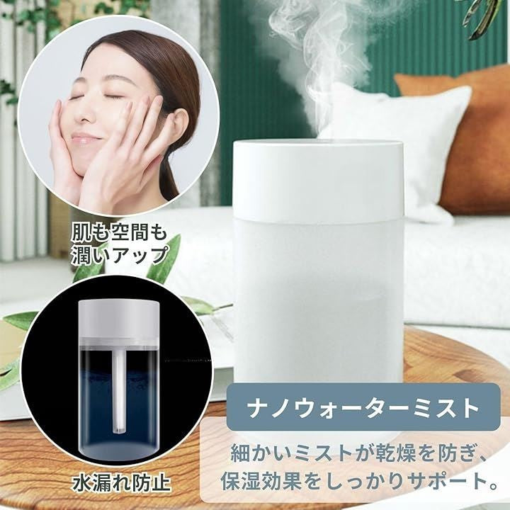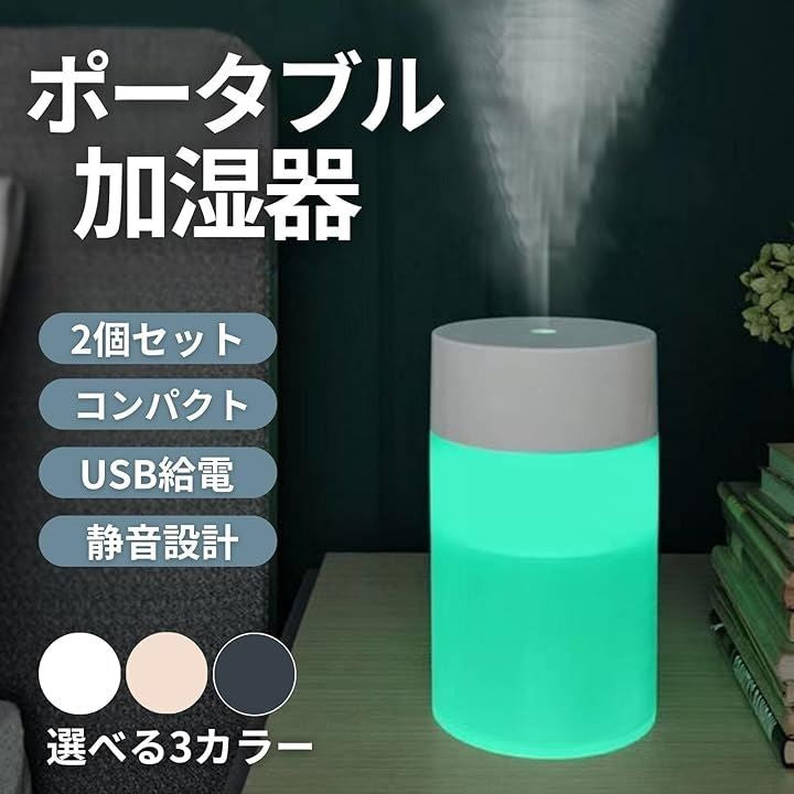 卓上 加湿器 2個セット 持ち運び可 小型 USB給電式 ケーブル電源 車載 オフィス リビング ベッドルーム 乾燥防止