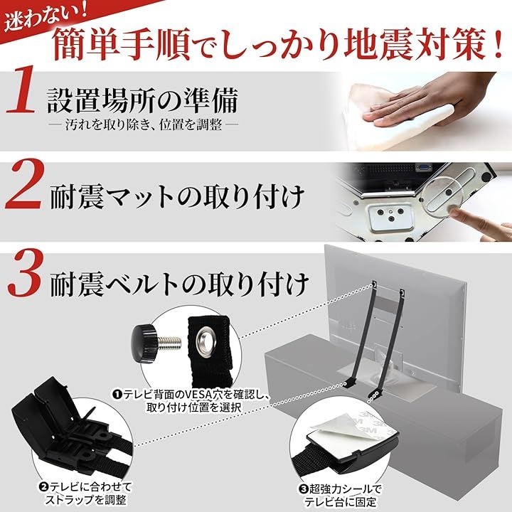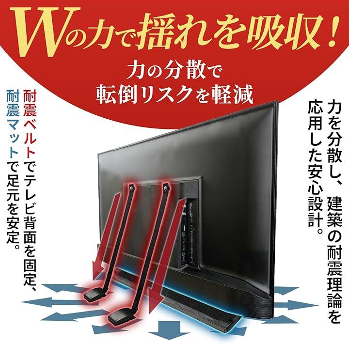 テレビ 転倒防止ベルト 建築士監修 Wの力 地震対策 穴開け不要 VESA穴固定 衝撃吸収