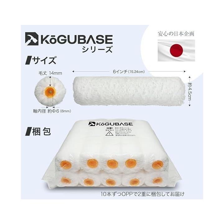 KōGU BASE 塗装ローラー マイクロファイバー スモール ペイント ペンキ 用品 6インチ 14ミリ 10本 |