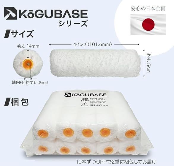KōGU BASE 塗装ローラー マイクロファイバー スモール ペイント ペンキ 用品 4インチ 14ミリ 10本 |