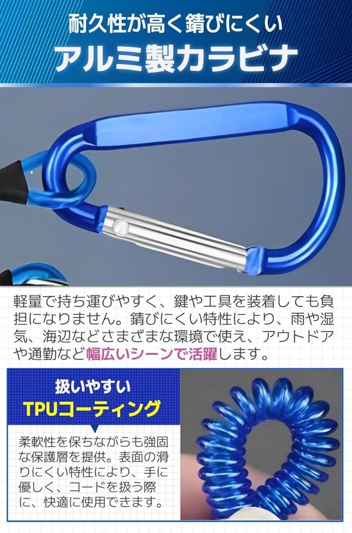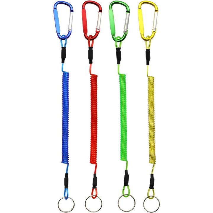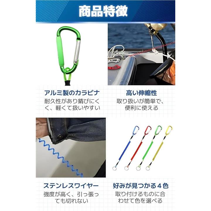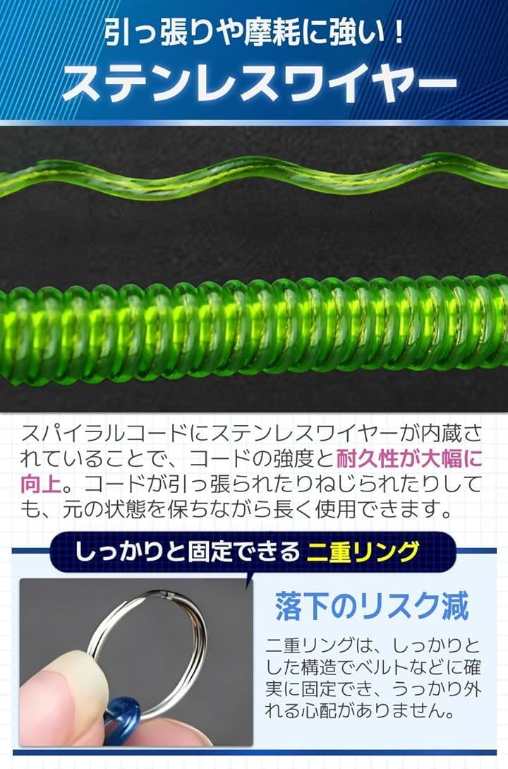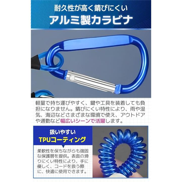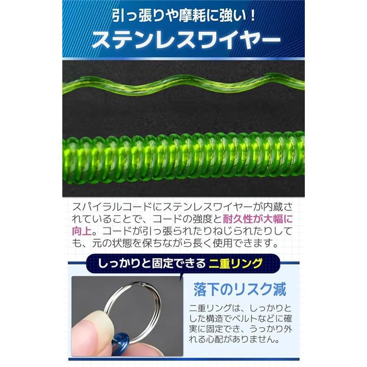 スパイラルコード 落下防止 ワイヤー キーストラップ カラビナ付き 伸縮 4色セット