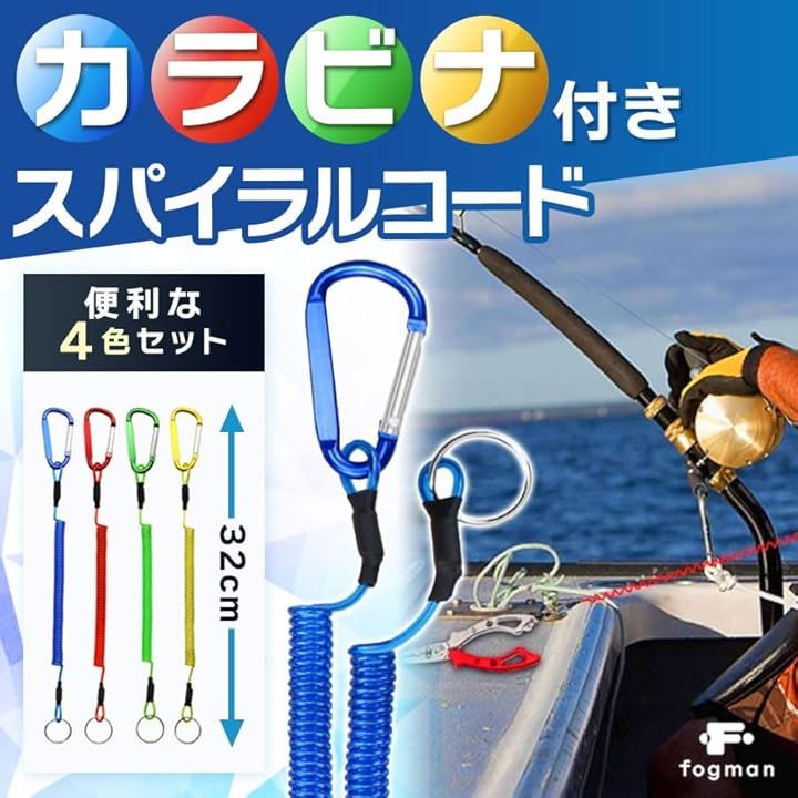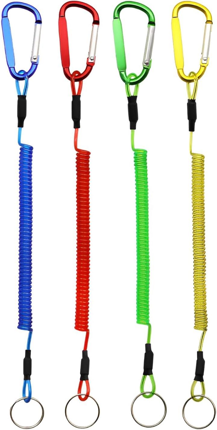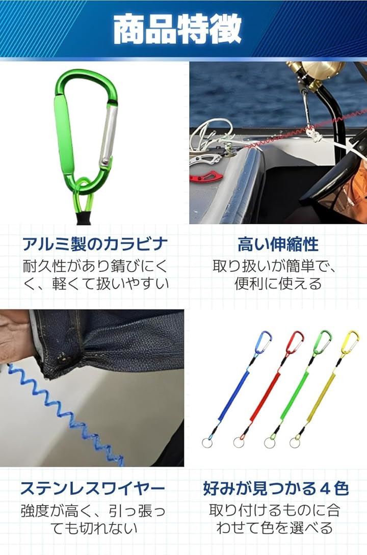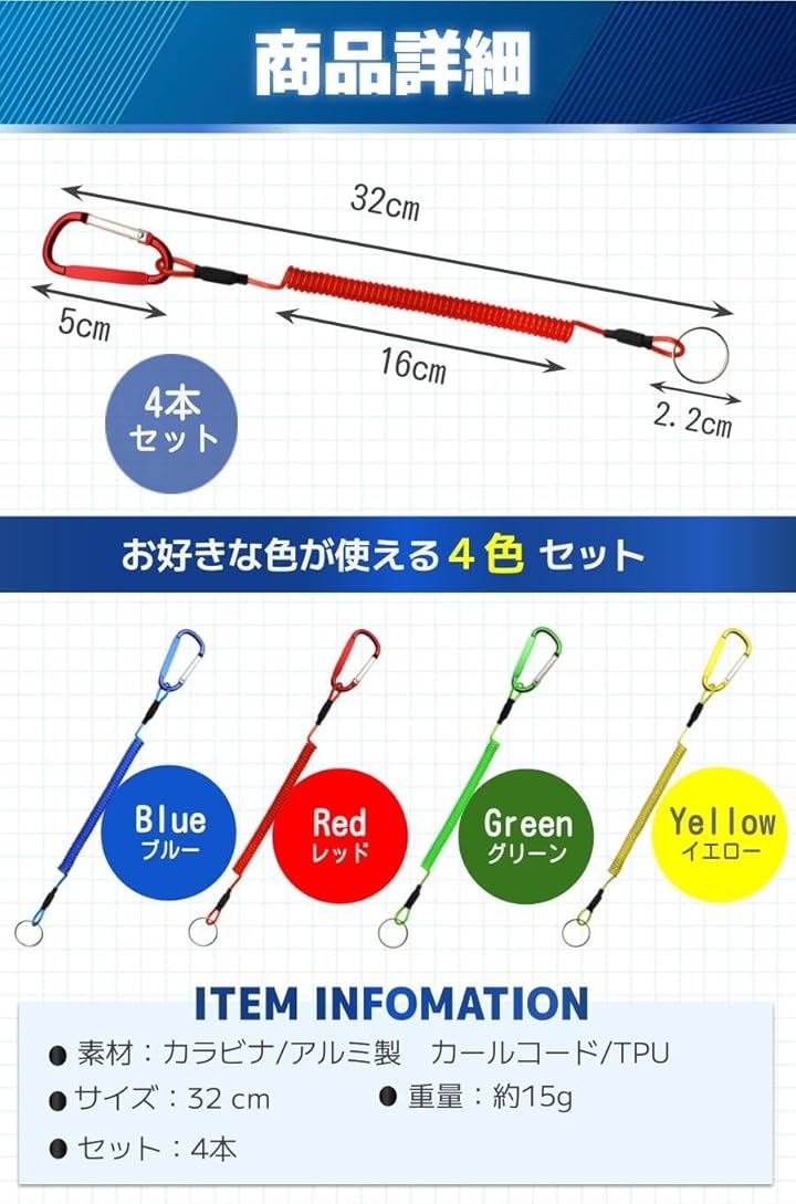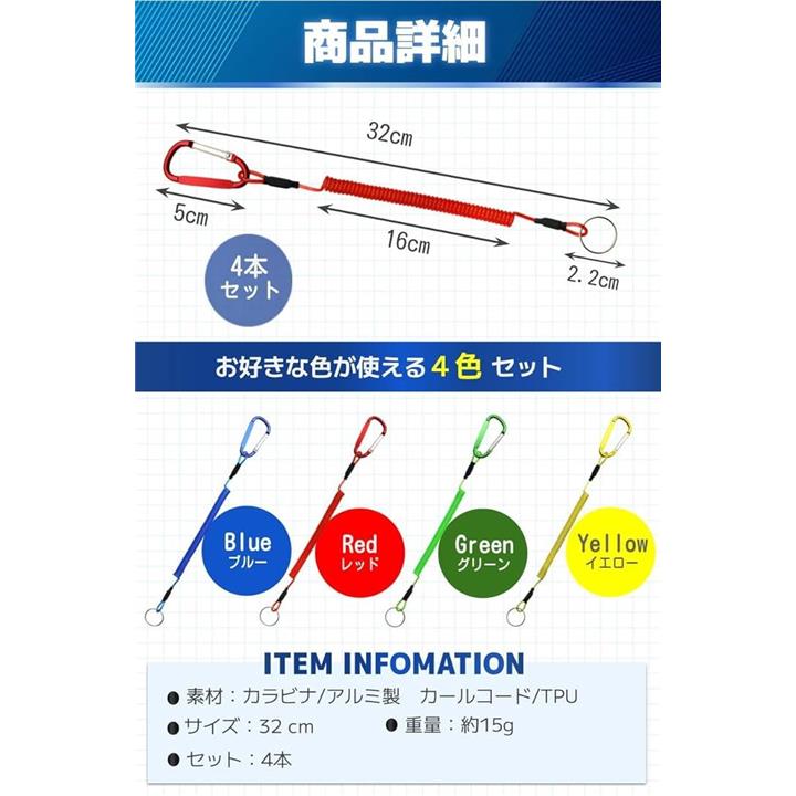 スパイラルコード 落下防止 ワイヤー キーストラップ カラビナ付き 伸縮 4色セット