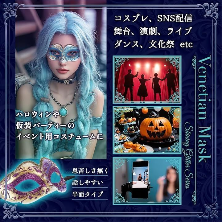 ベネチアンマスク 仮面 舞踏会 コスプレ マスカレードマスク 仮装 2個セット