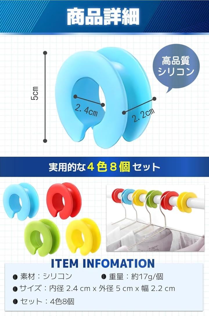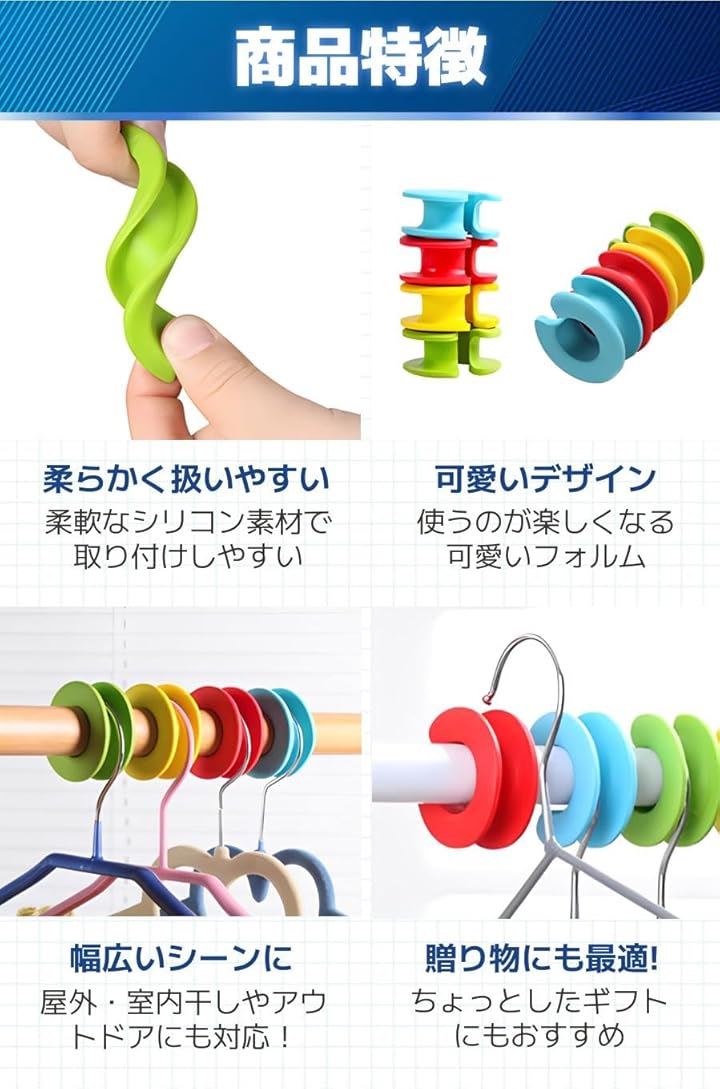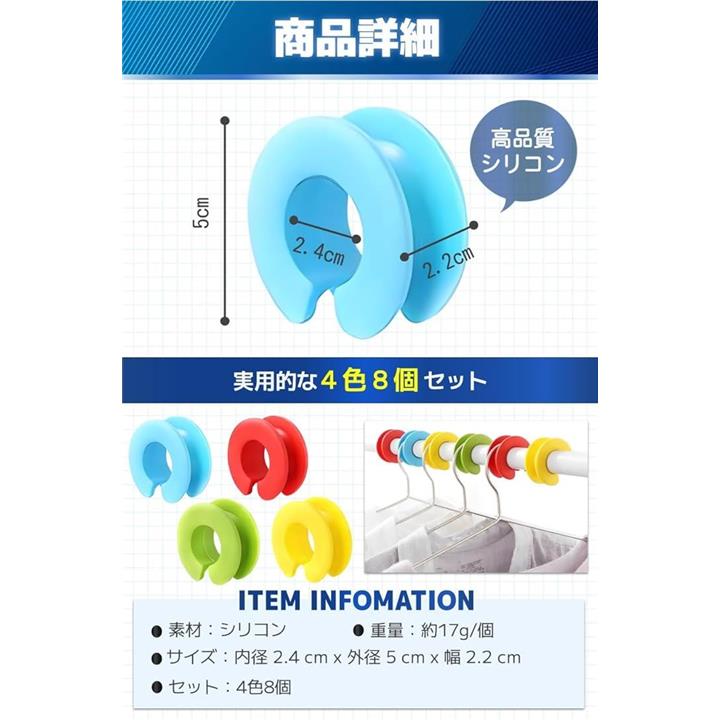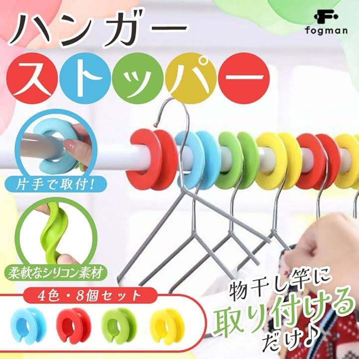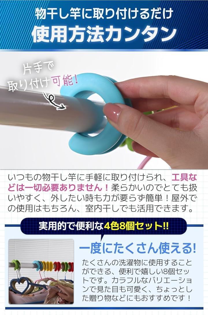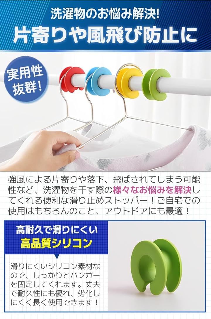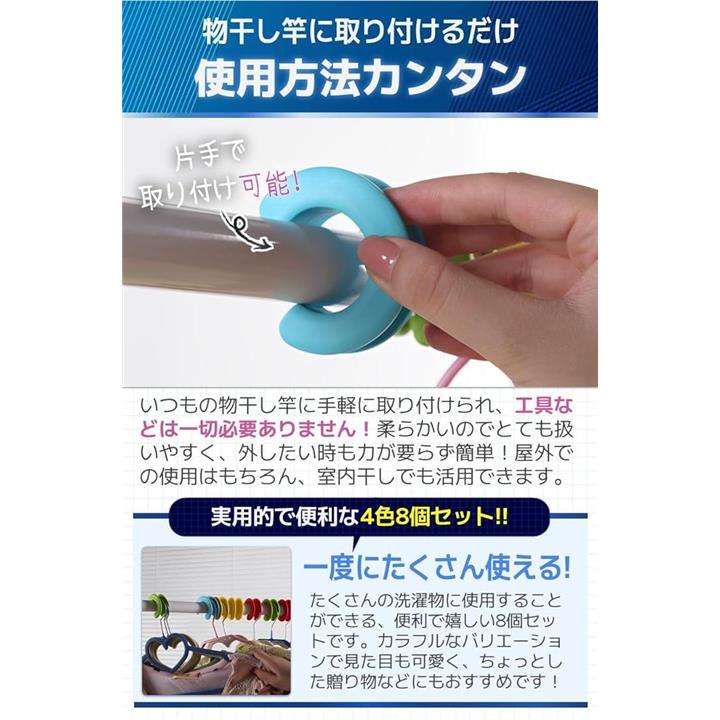 物干し竿 ストッパー ハンガー 滑り止め 風飛び防止 ホルダー 4色8個セット