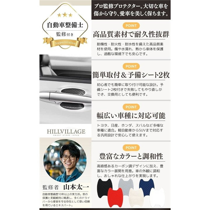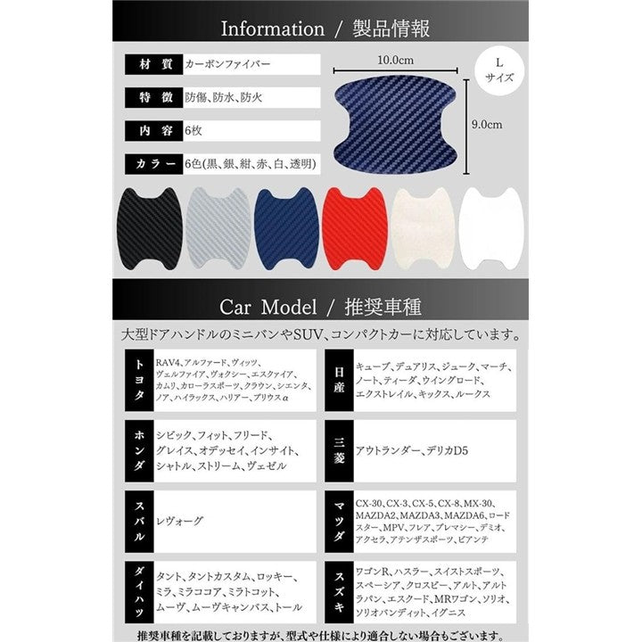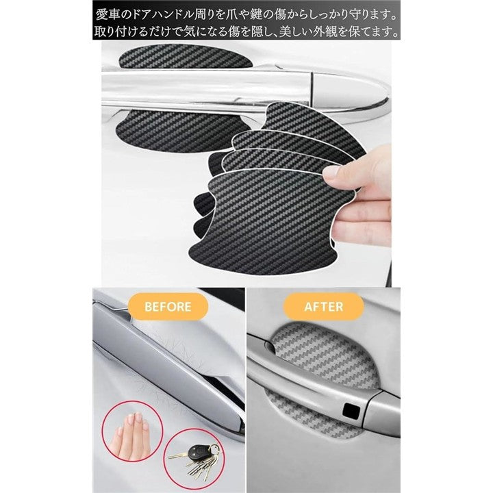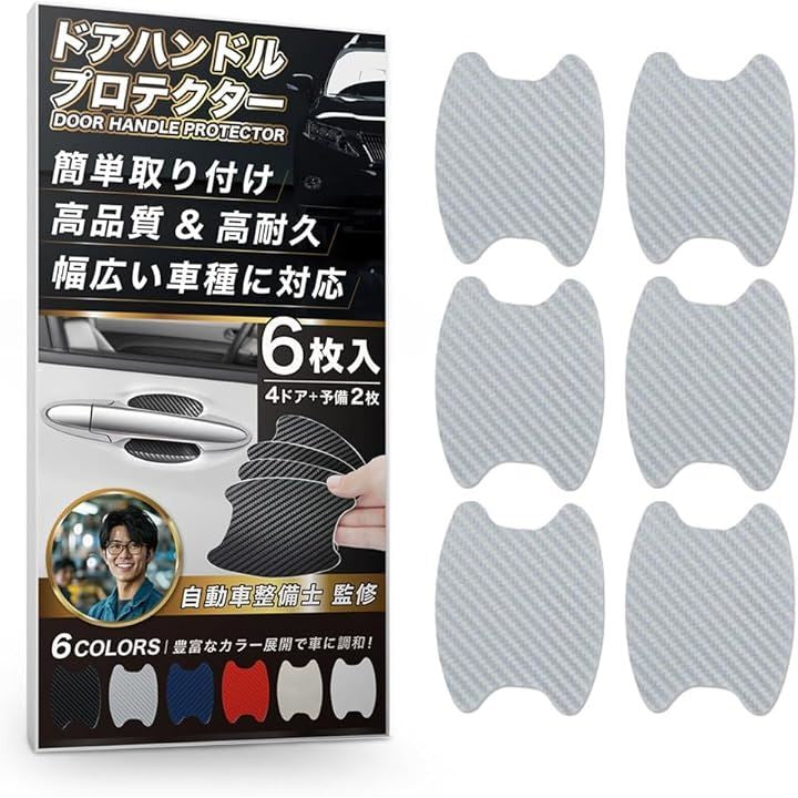 ドアハンドルプロテクター 自動車整備士監修&カーボン調シール 車用 アクセサリー ドアプロテクター 取り付け簡単&予備シート2枚入り カスタムパーツ 傷防止 保護フィルム 6枚入り