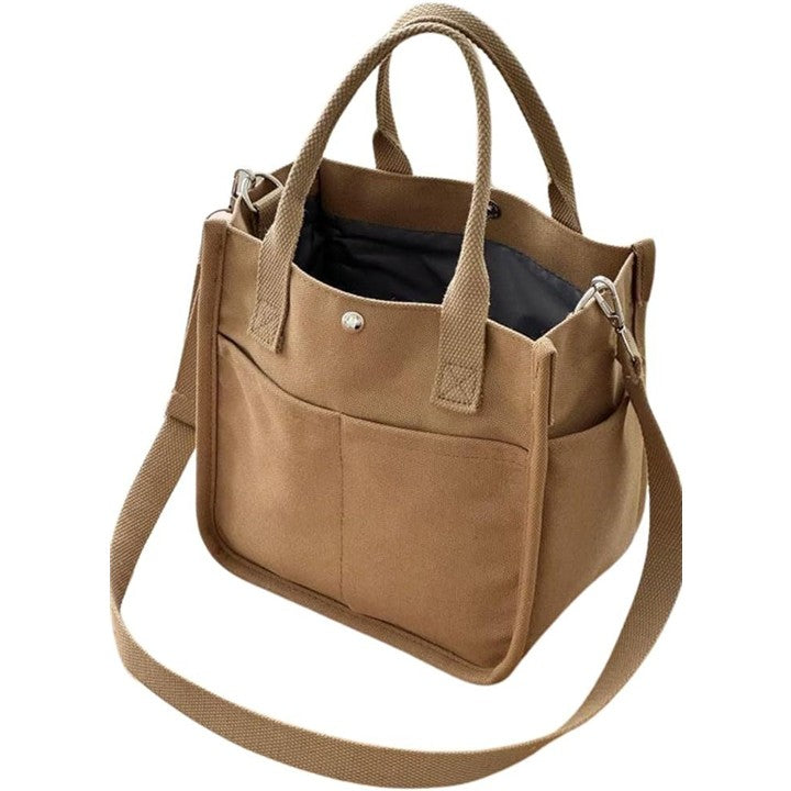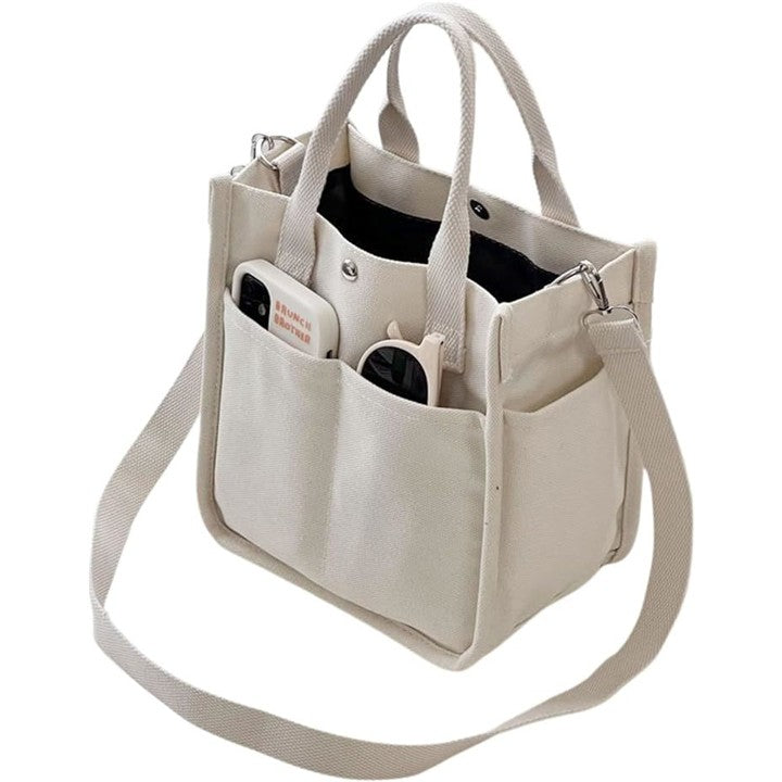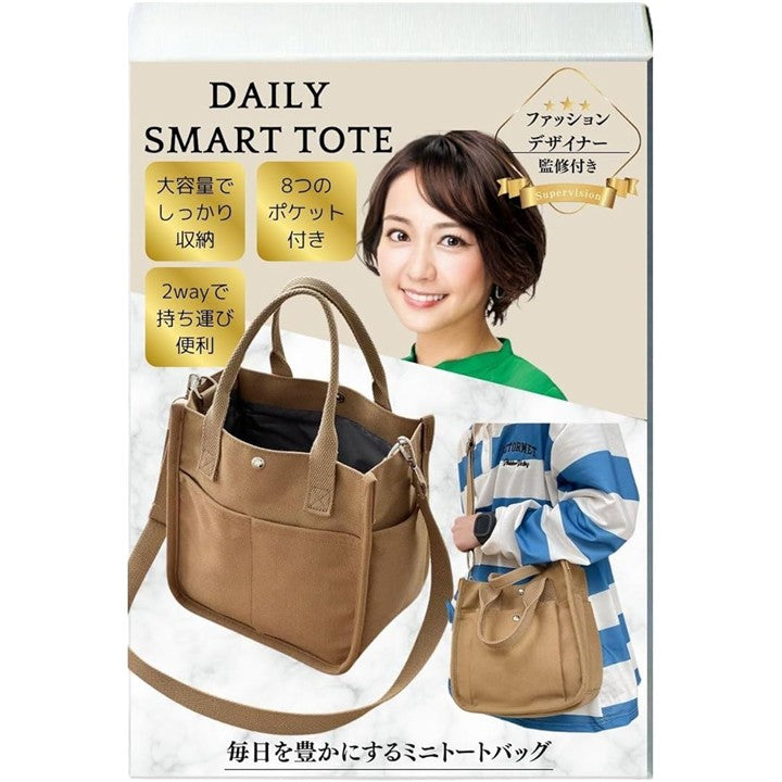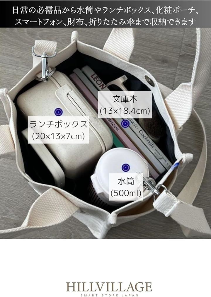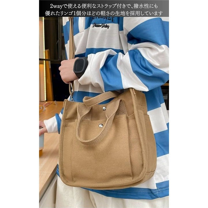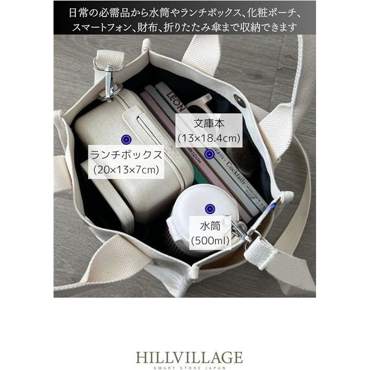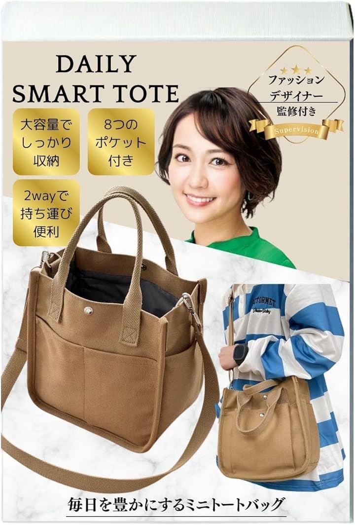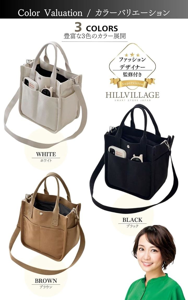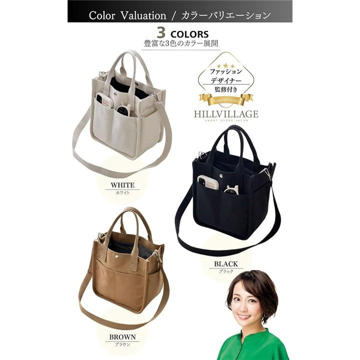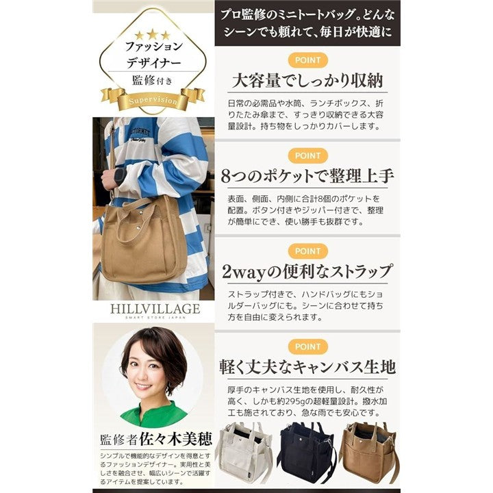 ミニトートバッグ ファッションデザイナー監修付き&2wayで使える 仕切り 手提げ 斜め掛け 8個のポケットで整理整頓 キャンバス レディース